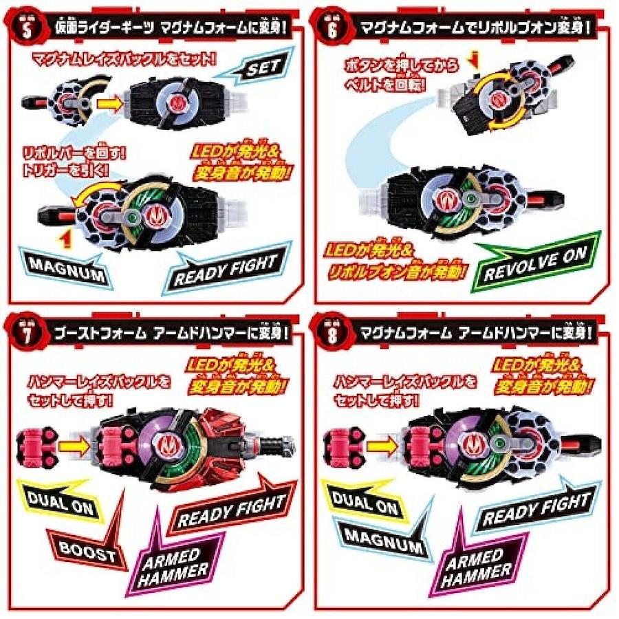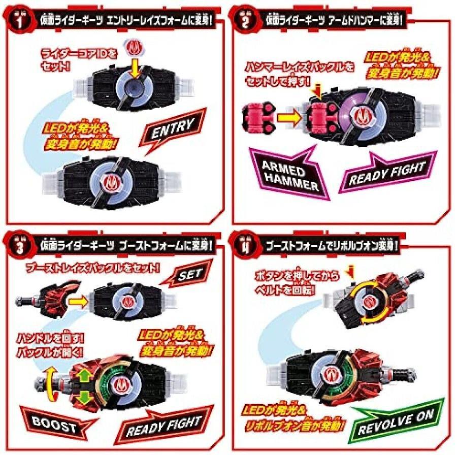 「商品情報」【2022年8月20日受注開始】仮面ライダーギーツ変身ベルトDXデザイアドライバーが登場!「主な仕様」『仮面ライダーギーツ』より、「変身ベルト DXデザイアドライバー」が登場!ライダーコアIDと、レイズバックルを付け替えると10種のフォームへの変身遊びが可能!それぞれ異なる操作ギミック搭載のレイズバックルでベルト遊びをカスタマイズ。さらにベルト回転ギミックでリボルブオン変身遊びが楽しめるなど、遊び満載の変身ベルトです。[使用電池]単4乾電池 × 3本(別売り)
