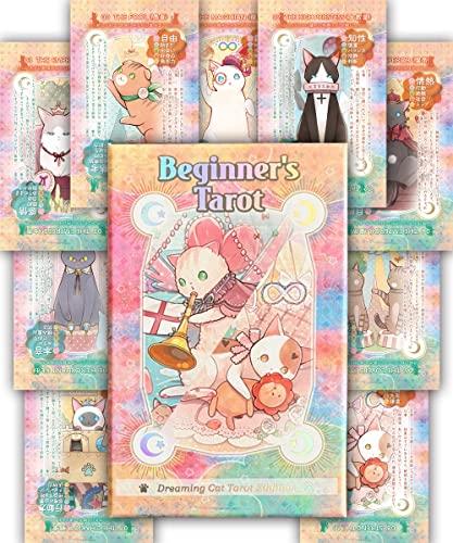 【ライダー版準拠】初心者に最適なタロットカード ビギナーズ タロット【ドリーミングキャットエディション】がついに発売されました! 毎日なんだかもやもやする… もっと明るく毎日を過ごしたい… そう思って、占いを初めてみようと思っても、 なかなか初心者にとってタロットカードは難しいですよね。 「今までのタロットカードって、なんだか難しそう。」 「イラストも怖いし、敷居が高い気がする…」そんなお客様の声から生まれたのが、 このビギナータロットシリーズです。 可愛いドリーミングキャットタロットのイラストを基調としたデザインに加え、 初心者向けに、上下に分かりやすく意味が書いてあることで、 カードを見るだけで、誰でも簡単に占いが出来ます。 難しさのない、あなたに寄り添った優しいタロットで、新たな一歩を踏み出してみませんか?