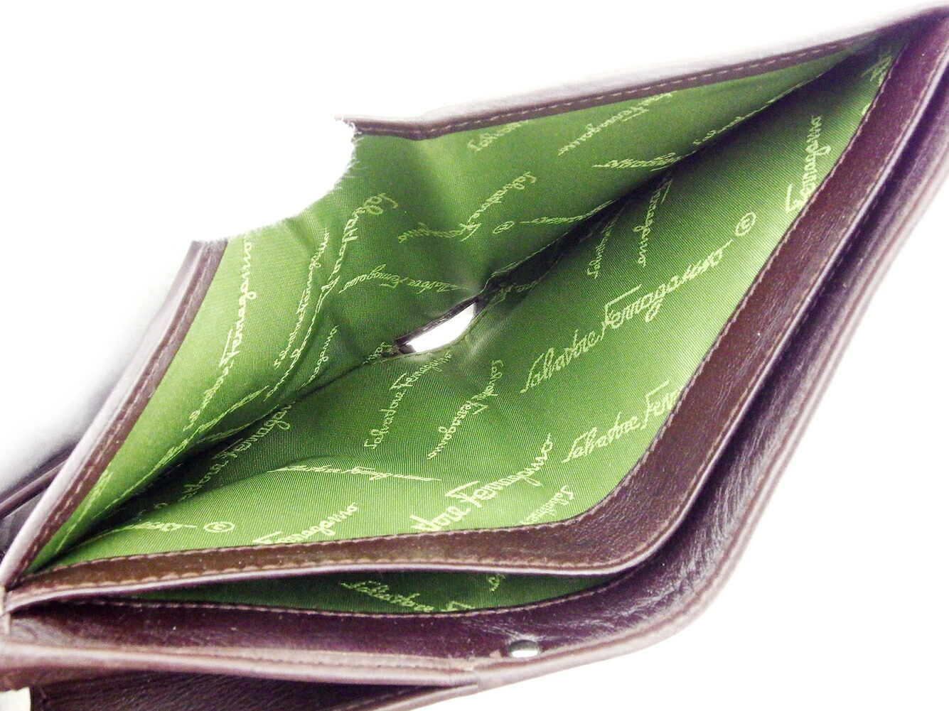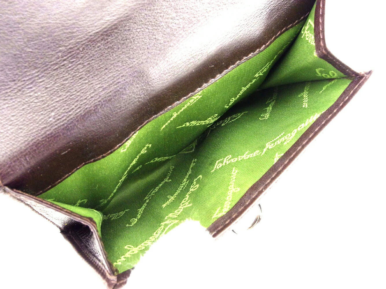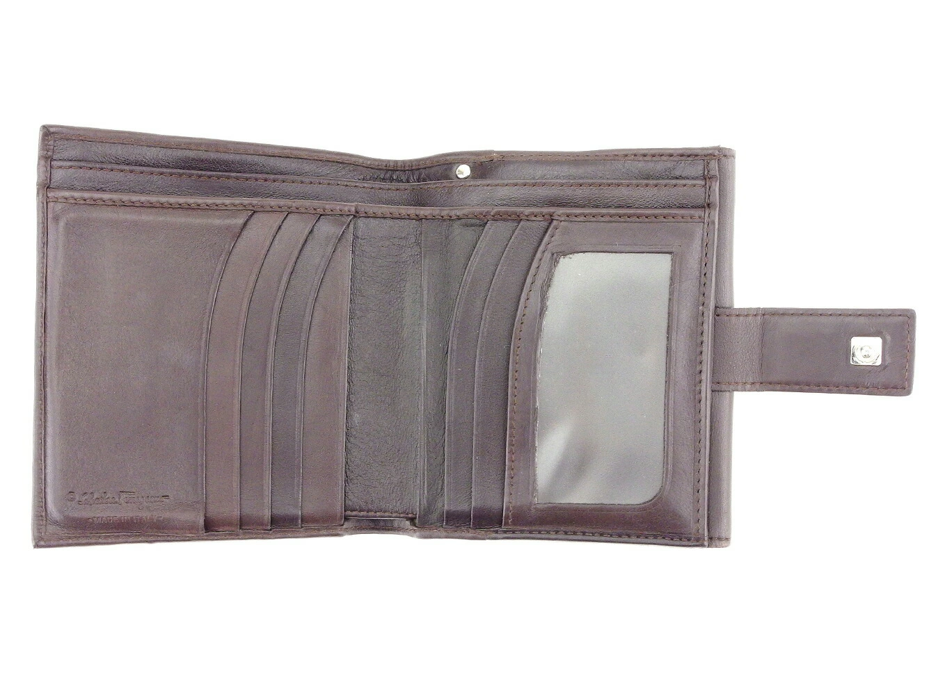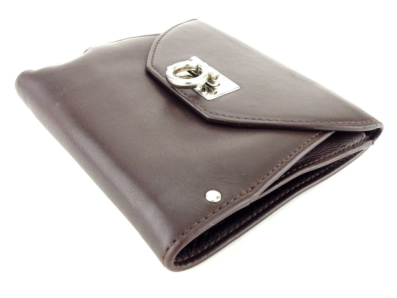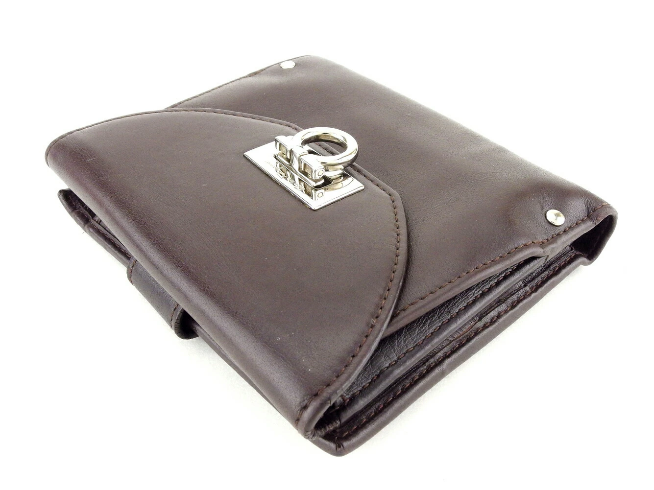 [Spring Sale ★ 30% Off Coupon] Salvatore Ferragamo Gancini Bifold Wallet in Brown and Silver. Pre-owned, High-End Vintage.