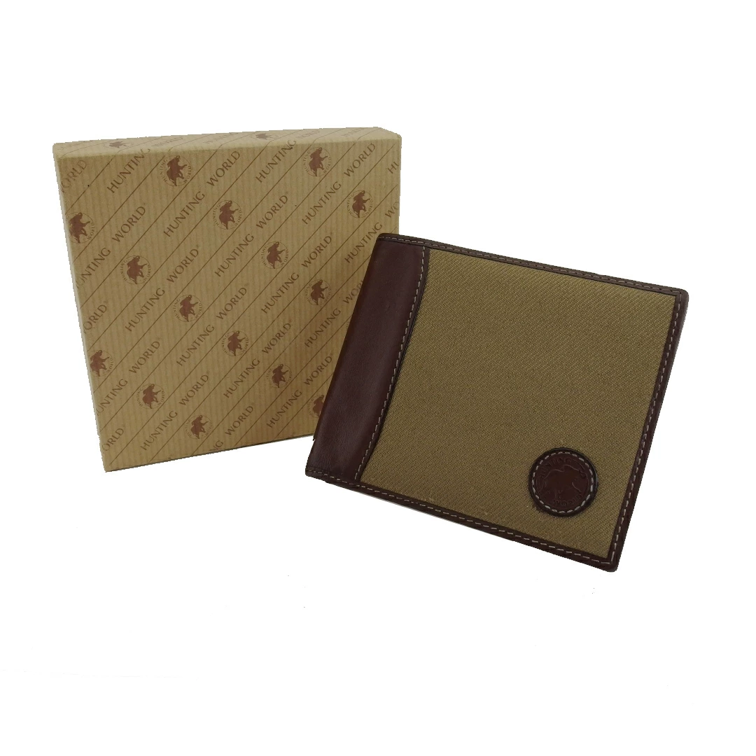 [Spring Sale ★ 30% Off Coupon] Hunting World Safari Today Elephant Mark Bifold Wallet in Khaki and Brown, Women's, Pre-owned, High-End Brand, Vintage