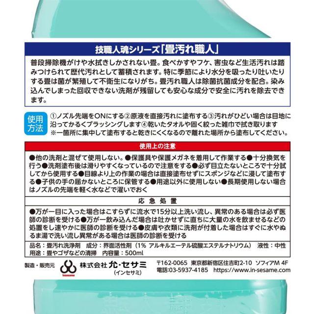 サイズ:500ミリリットル(x1)◆商品名:【畳汚れ職人500mL】畳専用防カビ抗菌成分配合!水拭きだけで取れない井草の間の汚れを浮かせて落とす!