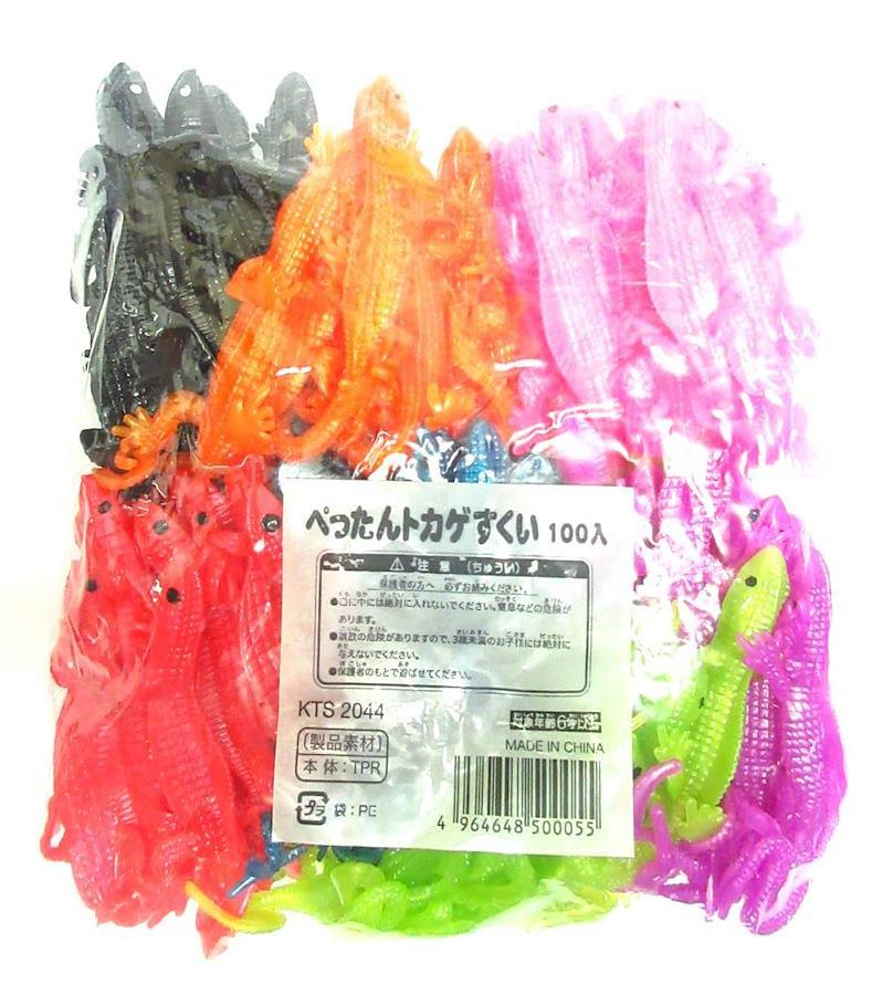 イベントやすくい遊びに。水に浮くトカゲの人形です。 色もカラフルに7色!たっぷり遊べる100個入り 軽いから小さなお子様もすくいやすい!すくったあとはペタペタでくっつくおもちゃとしてもお使い頂けます。 ○ご注意○ 商品の表面が油っぽくなっておりますが、製造過程で必要な工程となるため、このような仕様となっております。 不良品ではございませんので予めご了承ください。 本体サイズ:全長 約100mm 対象年齢:6歳以上 製造国:中国