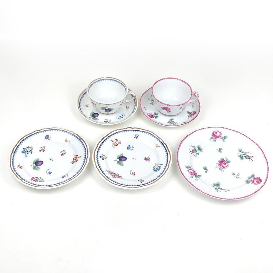 ◎アンティークローズのカップ&ソーサー、プレート1枚とイタリアンフルーツ カップ&ソーサー、プレート2枚のセット◎美しい金彩と手書きの絵柄