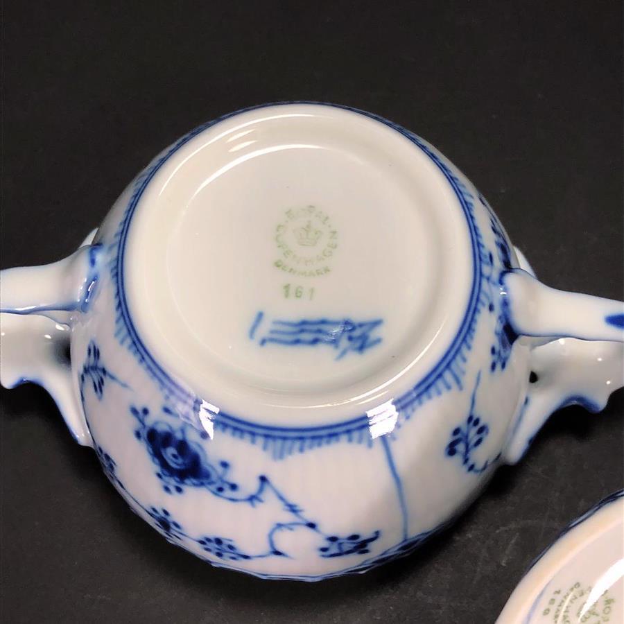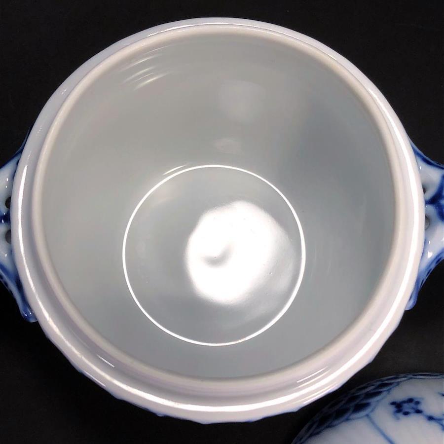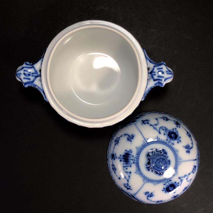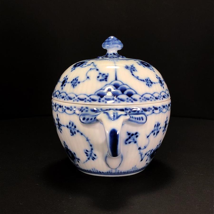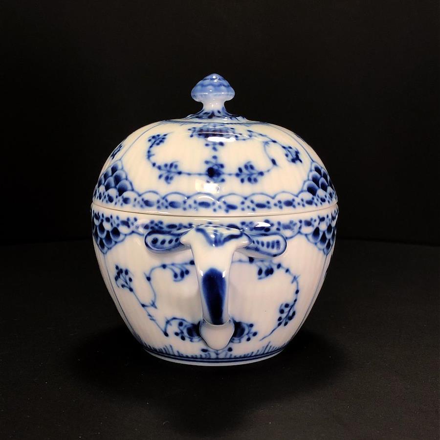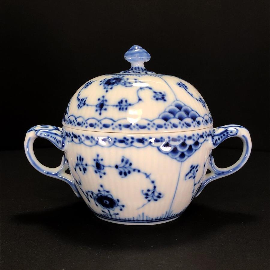 ◎ブルーフルーテッド ハーフレースのシュガーポット