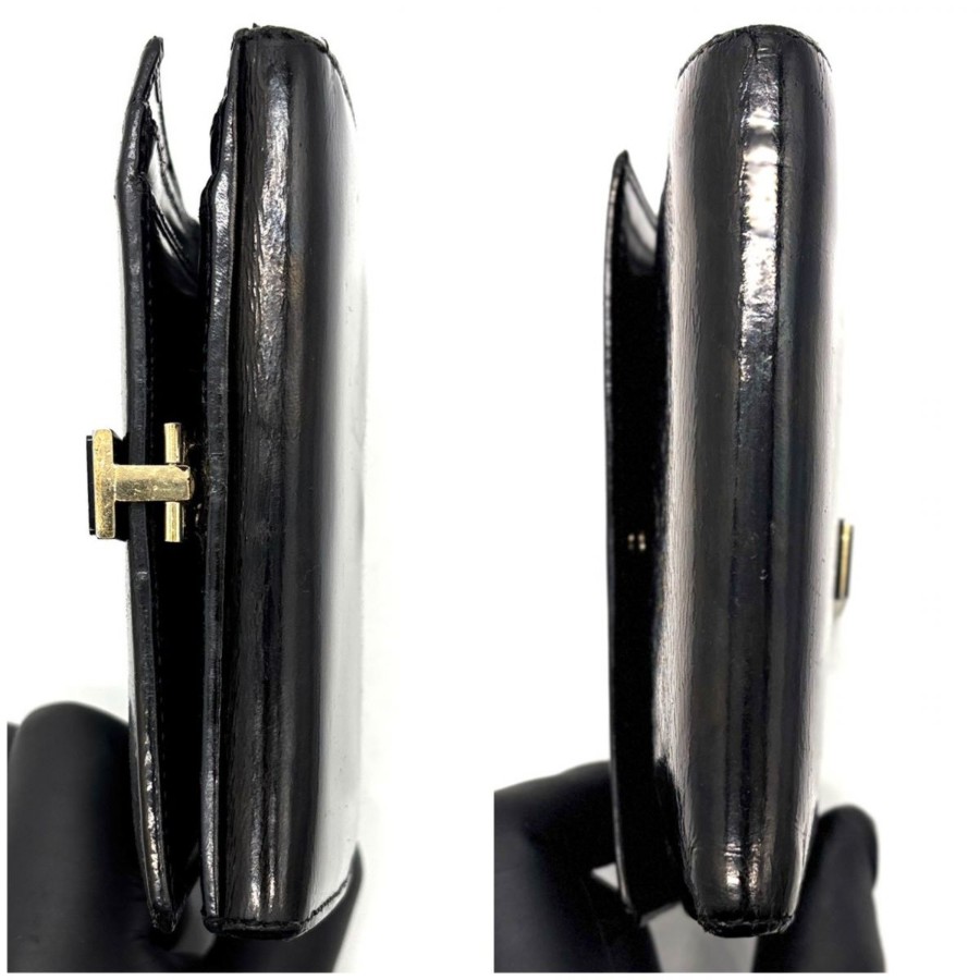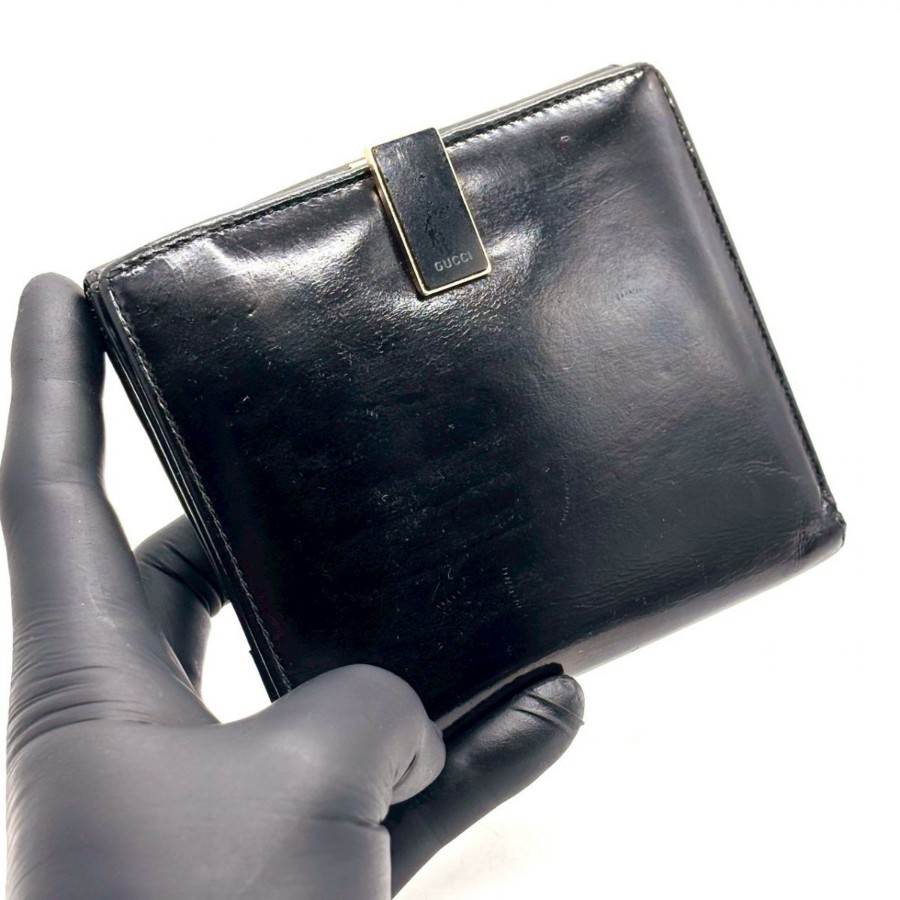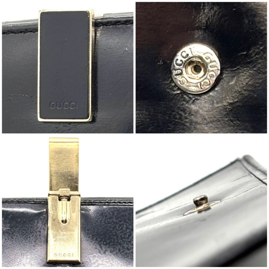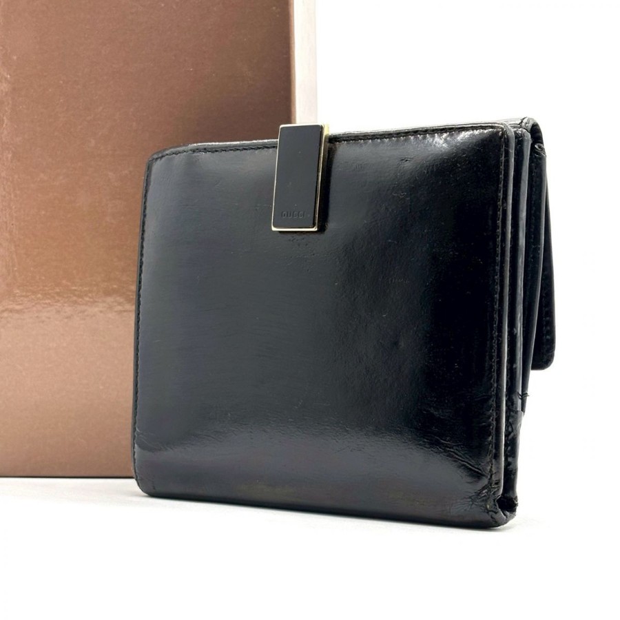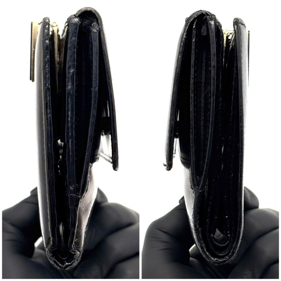 【商品説明】・黒小物を上品に持ちたい方へ。艶感あるパテントレザーと細身クリップが、手元にモードな余韻を添えるGUCCIの二つ折り財布です。10カード収納とコインケース付きで、ミニバッグ派にもデイリー使いにも馴染む一品です。