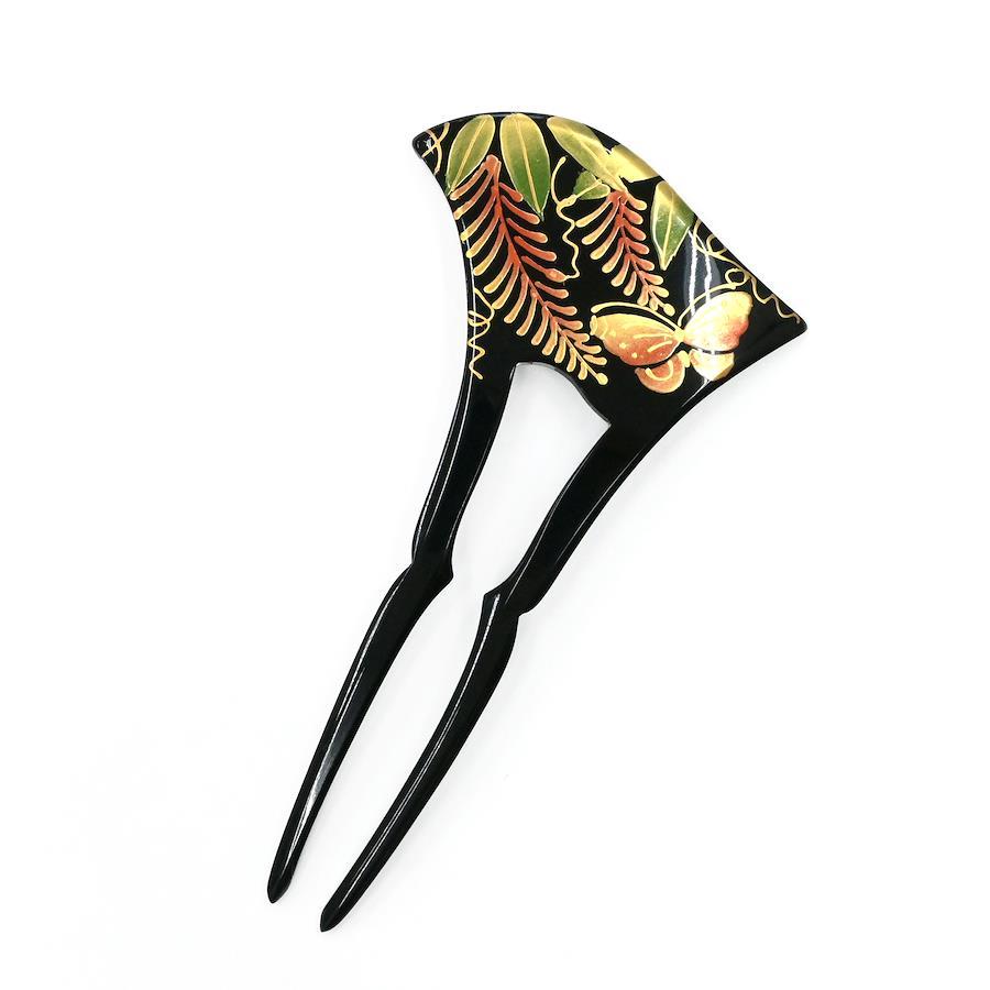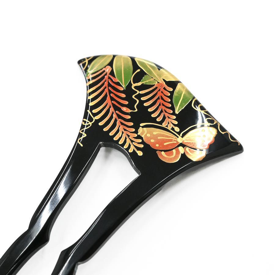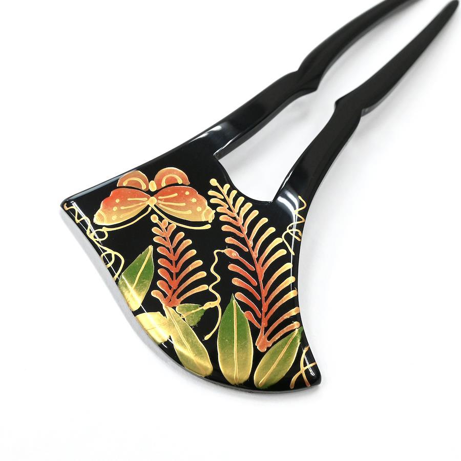 クラシカルなムードあふれる蒔絵細工のバチ型かんざし。