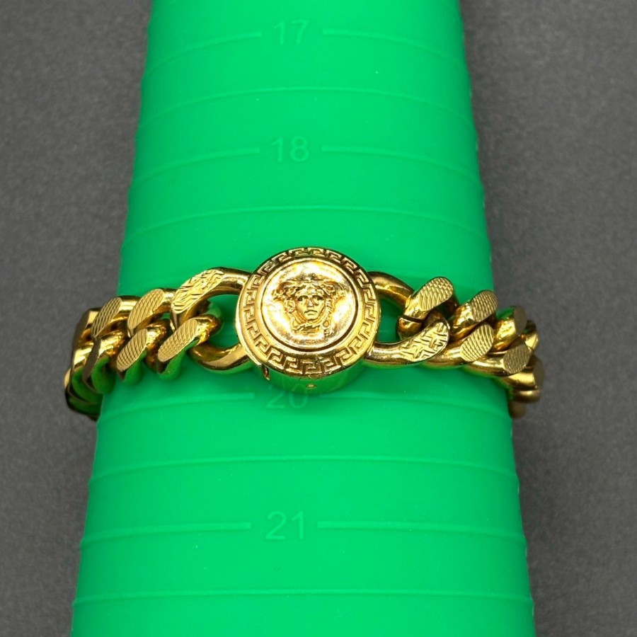 【商品説明】・手元に宿るのは、静かに主張する存在感。メデューサと喜平チェーンが織りなす重厚なデザインは、Y2Kやストリートスタイルとも好相性。シンプルな装いに一点加えるだけで、コーデ全体を引き締めるアクセントに。