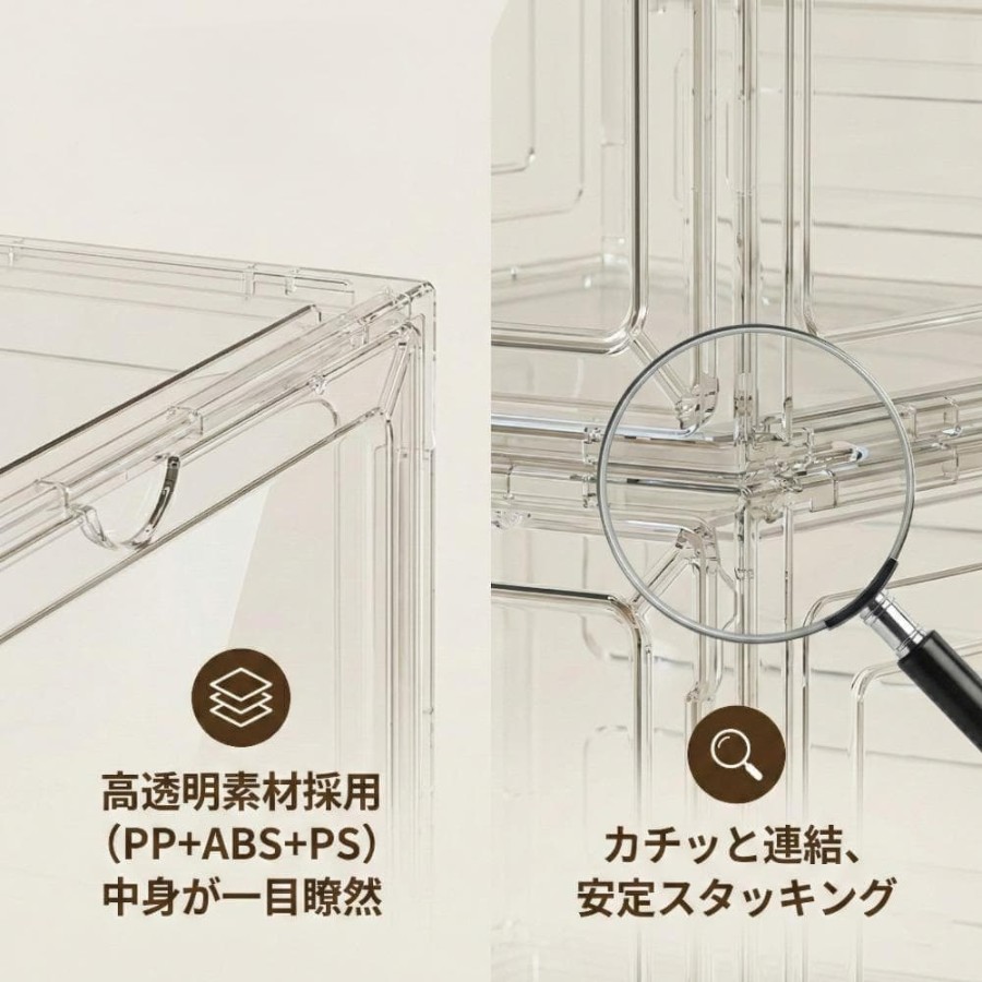【圧倒的な透明感】高透明素材(PP+ABS+PS)を採用し、中身がひと目で分かります。