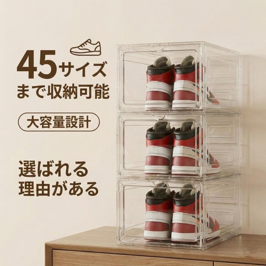 「プレミアムクリアシューズボックス」で、あなたのコレクションをアートのように美しく飾りましょう。