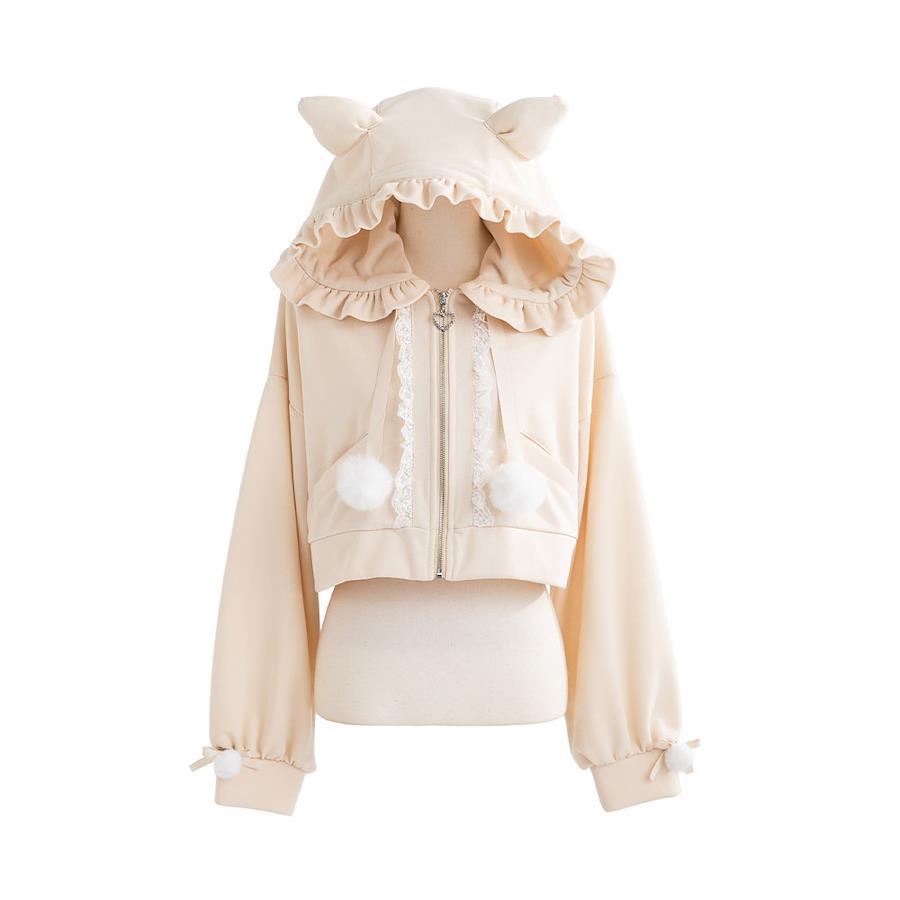 妖精のココ、ミルクの耳がデザインポイントのショートパーカーと、