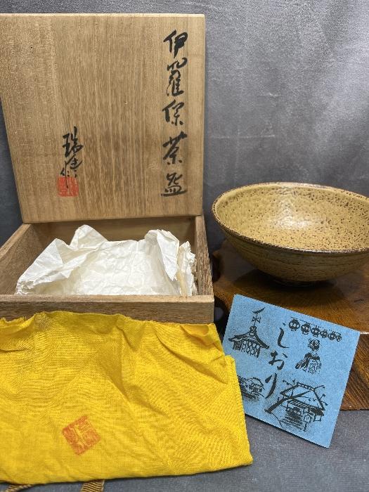 d03-260128002001015-000【 京焼 】 河合瑞豊 造「 銘 嵯峨野 サガノ 」いらほ茶 共箱茶碗 抹茶碗 茶道具 陶器 焼物