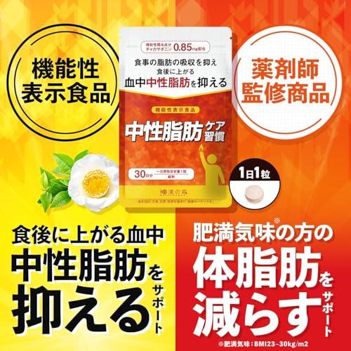 ?本品にはチャカサポニンが含まれます。チャカサポニンには、食事に含まれる 脂肪 の吸収を抑えて、食後に上がる 血中 中性脂肪 を抑える機能、継続摂取により、 肥満 気味の方の 体脂肪 、 お腹の脂肪 ( 内臓脂肪 ・ 皮下脂肪 )、 ウエスト周囲径 、 体重 の減少をサポートし、高めの BMI を改善させる機能が報告されています。 ?健康な成人で、肥満 気味な方、 お腹の脂肪 ( 内臓脂肪 ・ 皮下脂肪 )・ ウエスト周囲径 ・ 体重 が気になる方、 BMI が 高め の方におすすめの機能性表示食品 ?1袋30粒入り(280mg×30粒)錠剤タイプ 保存料 着色料 香料不使用【製造工場】国内GMP認定工場 栄養成分表示:1粒あたり(エネルギー1.084kcal・たんぱく質0.007g・脂質0.007g・炭水化物0.248g・食塩0~0.01g) チャカサポニン : 0.85mg ※ 特定保健用食品 トクホ とは違い 機能性表示食品 である。 ?ダイエット を全力サポート チャカサポニン 3つの力 ① 脂肪 の吸収を抑制サポート ② 体脂肪 の蓄積を抑制 ③ 脂肪 (食事による)の分解促進。主成分の チャカサポニン にプラス11種類の和漢成分配合! ?漢方薬剤師の 大久保愛 先生監修! チャカサポニン の機能性表示食品。毎日お飲みいただくものなので、保存料・着色料・香料を入れていません。