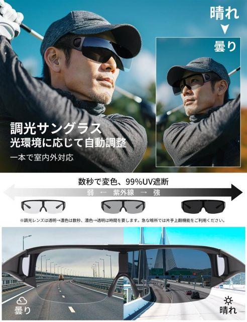 【最新調光技術搭載】室内では透明、屋外では自動的に濃いサングラスに変化する革新的な調光レンズを搭載。紫外線量に応じてわずか数秒で最適な濃度に調整し、一日中快適な視界を提供します。さらに偏光機能により、水面のギラつきや路面の反射光を効果的にカット。釣りやドライブ時の視界がクリアになり、目の疲労を大幅に軽減します。