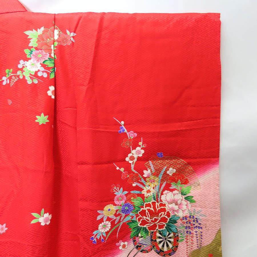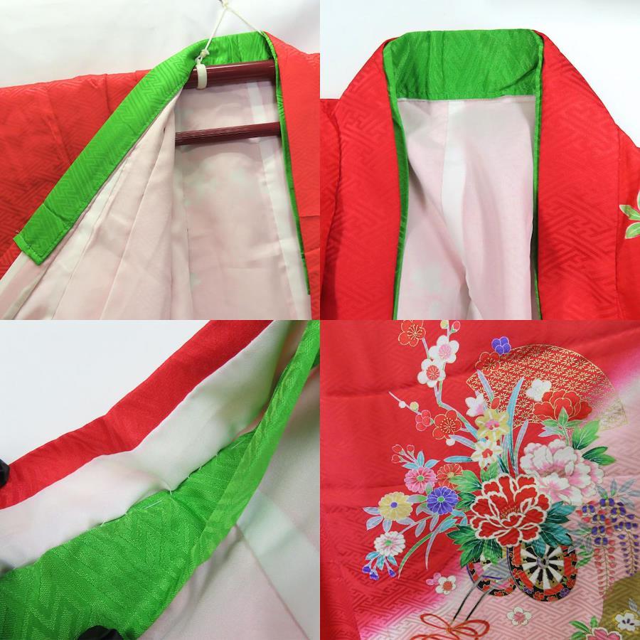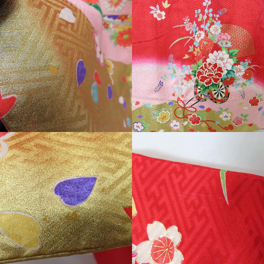 | 品名 | 【中古】 子供着物 化学繊維 ピンク ゴールド 女の子 七五三 重ね襟つき |