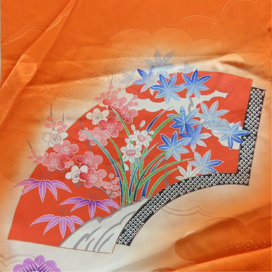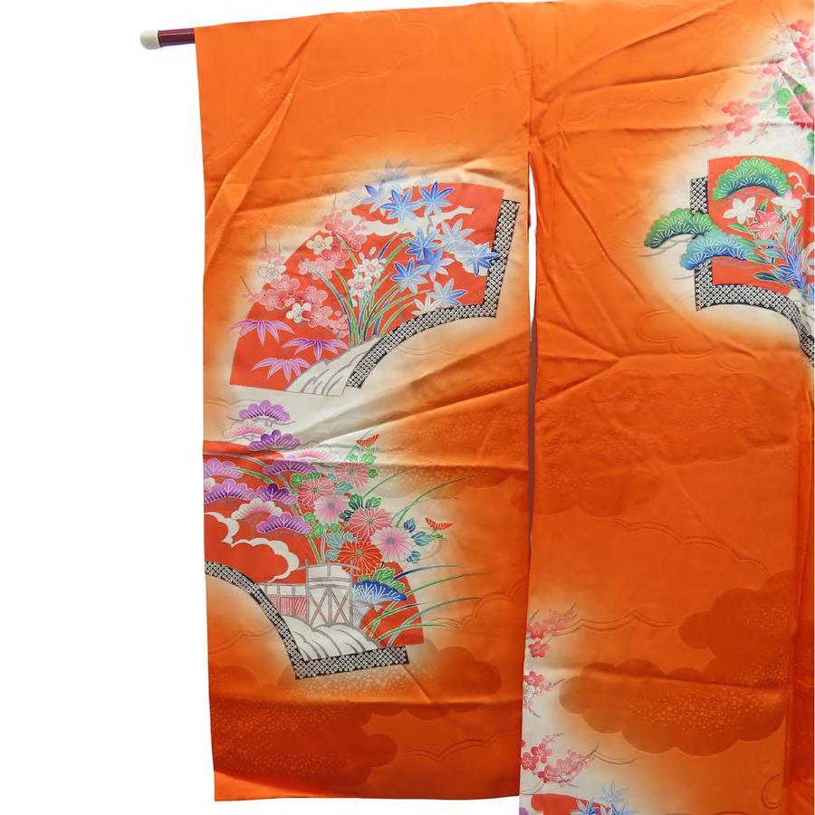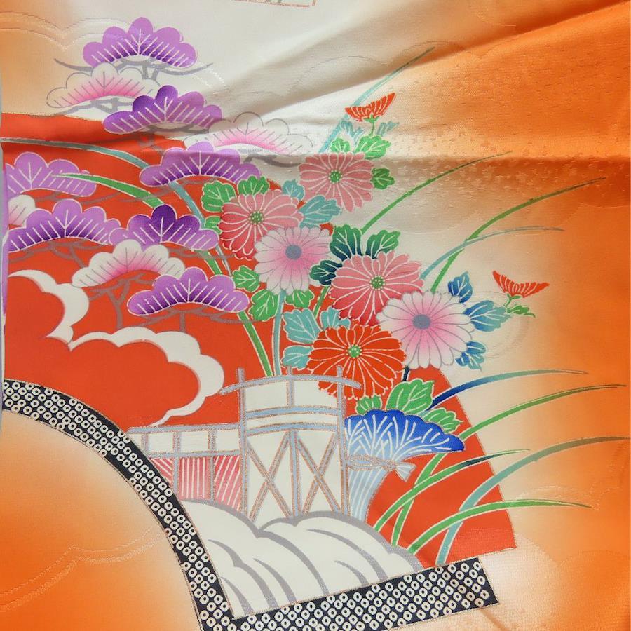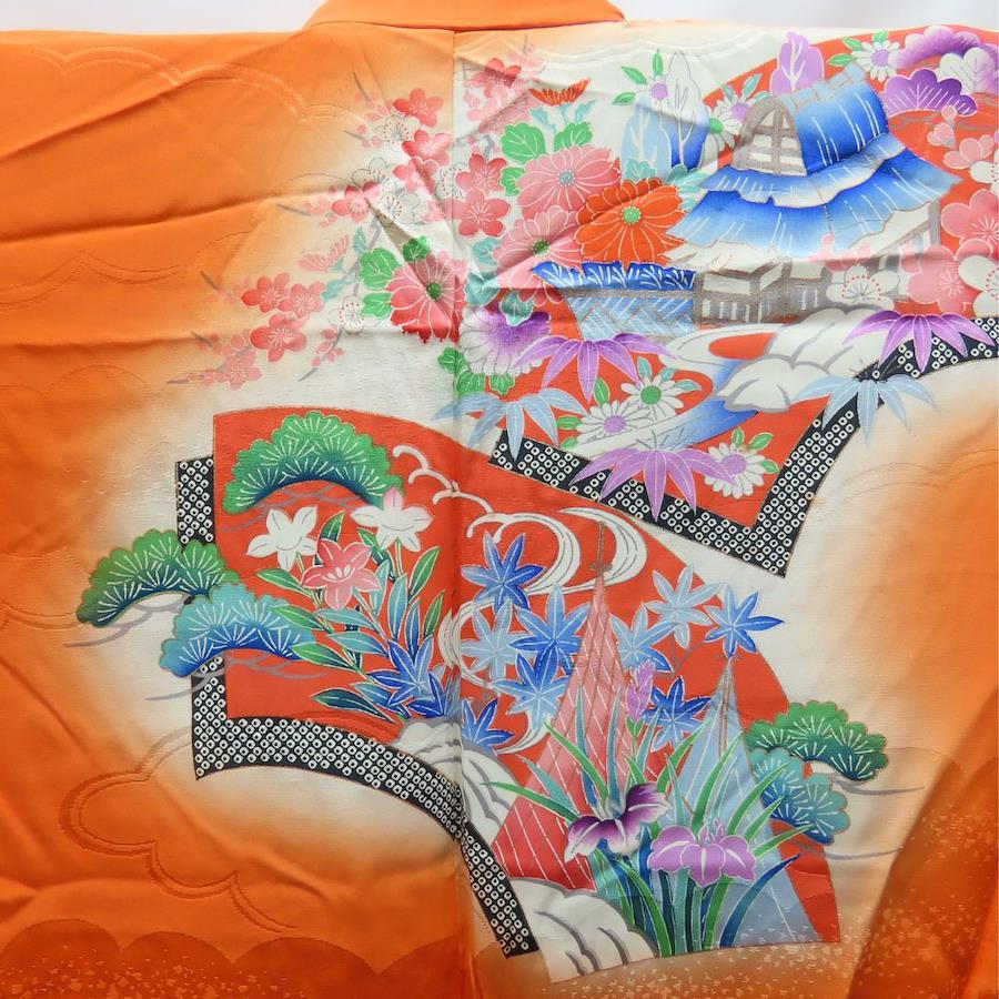 | 品名 | 【中古】 子供着物 祝い着 合成繊維 オレンジ マルチカラー 女の子 七五三 お宮参り |
