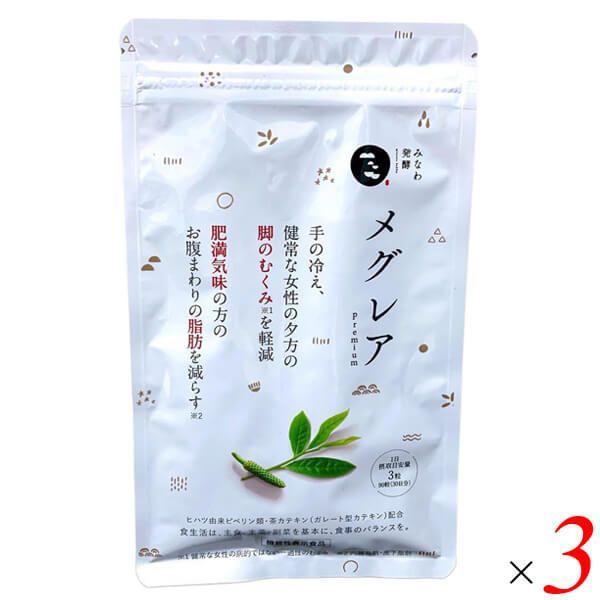 みなわ発酵メグレアpremiumは、ヒハツ由来ピペリン類と茶カテキン(ガレート型カテキン)を含む機能性表示食品です。1日3粒を目安にお召し上がりください。