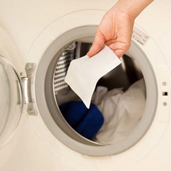 1)カラー&ダートコレクターのシートを一枚洗濯機の中に入れ、洗濯物と洗剤を通常通りに洗濯機に入れて下さい。