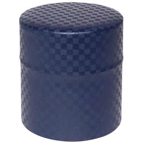 お茶缶にモダンな市松柄のカラー紙を貼って仕上げた容器です。