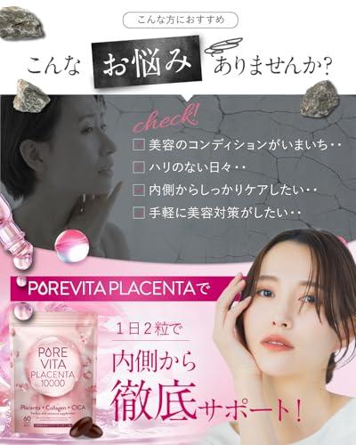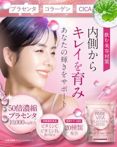 ?【50倍濃縮プラセンタを10,000mg贅沢配合】古代エジプトの女王クレオパトラや秦の始皇帝などが愛用したと伝えられている極上の美容成分プラセンタ。そんなプラセンタの中でもEU規格に適合した厳選された高品質な「豚+馬」のWプラセンタを50倍濃縮し、2粒に10,000mg高濃度配合しました。贅沢プラセンタ+美容サポート成分20種が、内側からキレイを育み、あなたの輝きをサポートします。 ?【超低分子コラーゲン × CICA によるハリツヤサポート】話題のうるおい成分であるCICAに加え、しっかり吸収を後押しする分子の細かい「超低分子コラーゲン」を贅沢に配合し、あなたのハリツヤ生活をサポートします。 ?【20種の美容サポート成分をこだわり配合】日々の美しさ、輝き、ハリツヤのために20種の美容サポート成分をこだわり配合。CICA(ツボクサ)、低分子コラーゲン(フィッシュコラーゲン)、セラミド、ヒアルロン酸、プロテオグリカン、エラスチン、アスタキサンチン、GABA、大豆イソフラボン、トコトリエノール、ナイアシン、亜麻仁油、ビタミンA、ビタミンB1、ビタミンB2、ビタミンB6、ビタミンB12、ビタミンC、ビタミンD、ビタミンE ?【国内GMP認定工場で製造】ピュアビタプラセンタは、品質管理に徹底的に配慮した国内GMP認定工場で生産されています。すべての過程において「一定の品質」が保たれるように生産工程を管理し、製造しております。 ?【内容量】60粒(約30日分)28.8g ?【お召し上がり方法】1日2粒を目安に、水またはぬるま湯でお召し上がりください。 ?【保管方法】直射日光・高温多湿の場所を避けて保管してください。 ?【原材料名】豚プラセンタエキス末(イタリア製造)、アマニ油、オリーブ油、MCT、馬プラセンタエキス末、ツボクサエキス末(ツボクサ抽出物、マルトデキストリン)、鮭鼻軟骨抽出物(デキストリン、鮭鼻軟骨抽出物)、エラスチン加水分解物、GABA、大豆イソフラボン抽出物、米油抽出物、フィッシュコラーゲンペプチド(ゼラチンを含む)、トウモロコシ胚芽抽出物/ゼラチン、グリセリン、ビタミンC、ミツロウ、グリセリン脂肪酸エステル、カラメル色素、植物レシチン(大豆由来)、ビタミンB2、ヒアルロン酸、ビタミンB1、ナイアシン、ビタミンB6、ビタミンE、ヘマトコッカス藻色素、ビタミンA、ビタミンD、ビタミンB12 ?MADE IN JAPAN