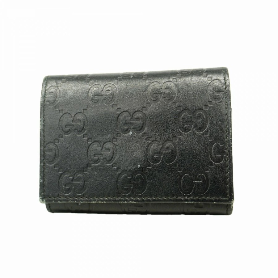 【6db2117】グッチ 名刺入れ グッチシマ 120965 レザー ブラック シルバー金具【中古】レディース
