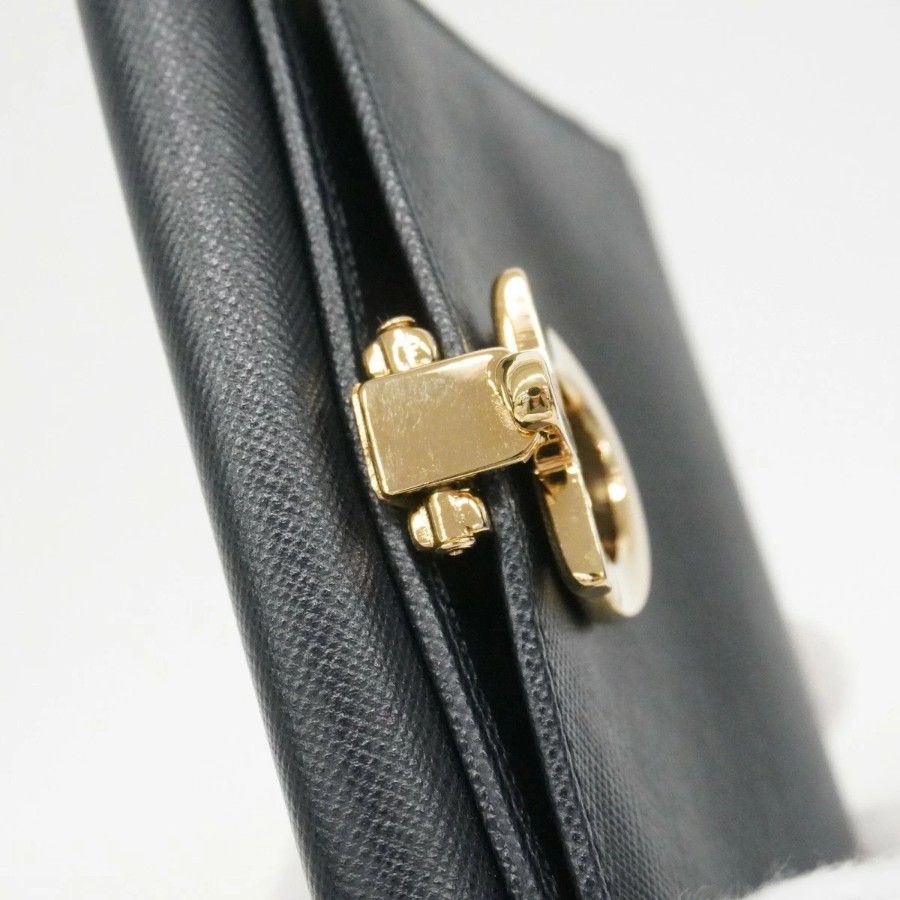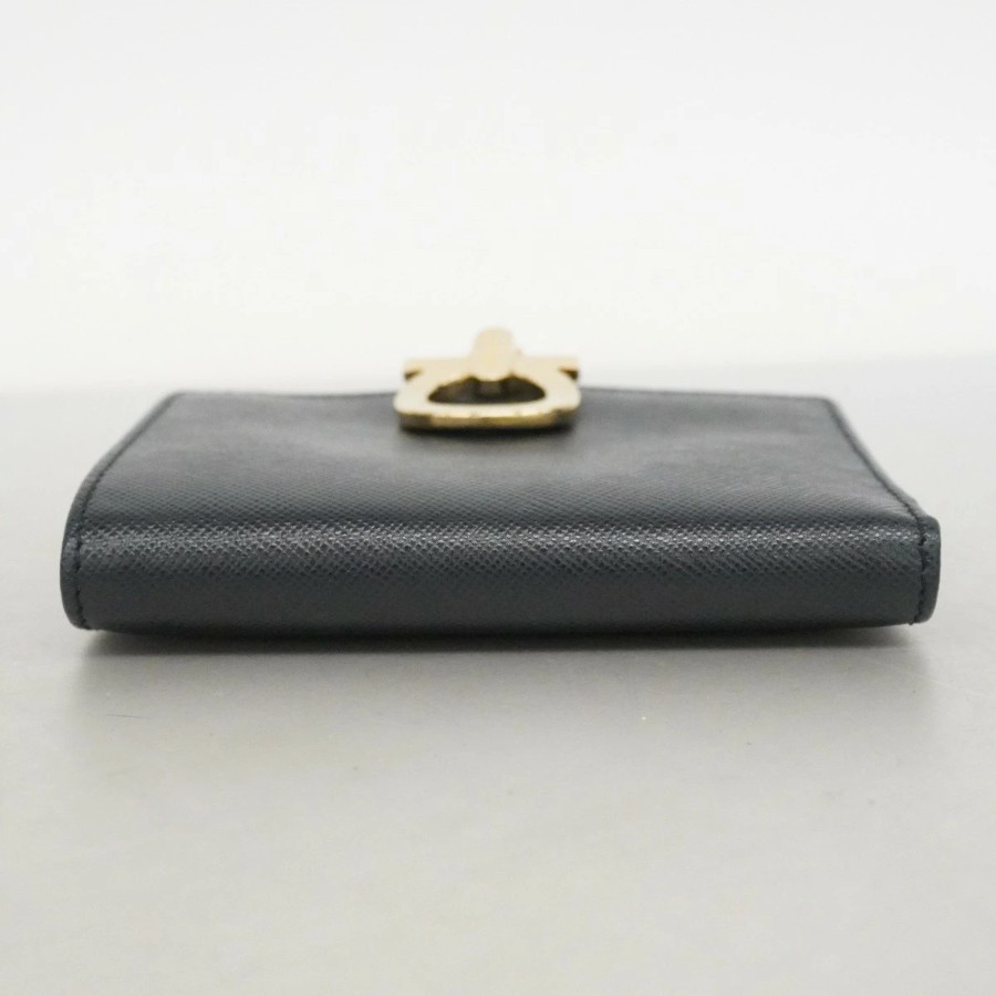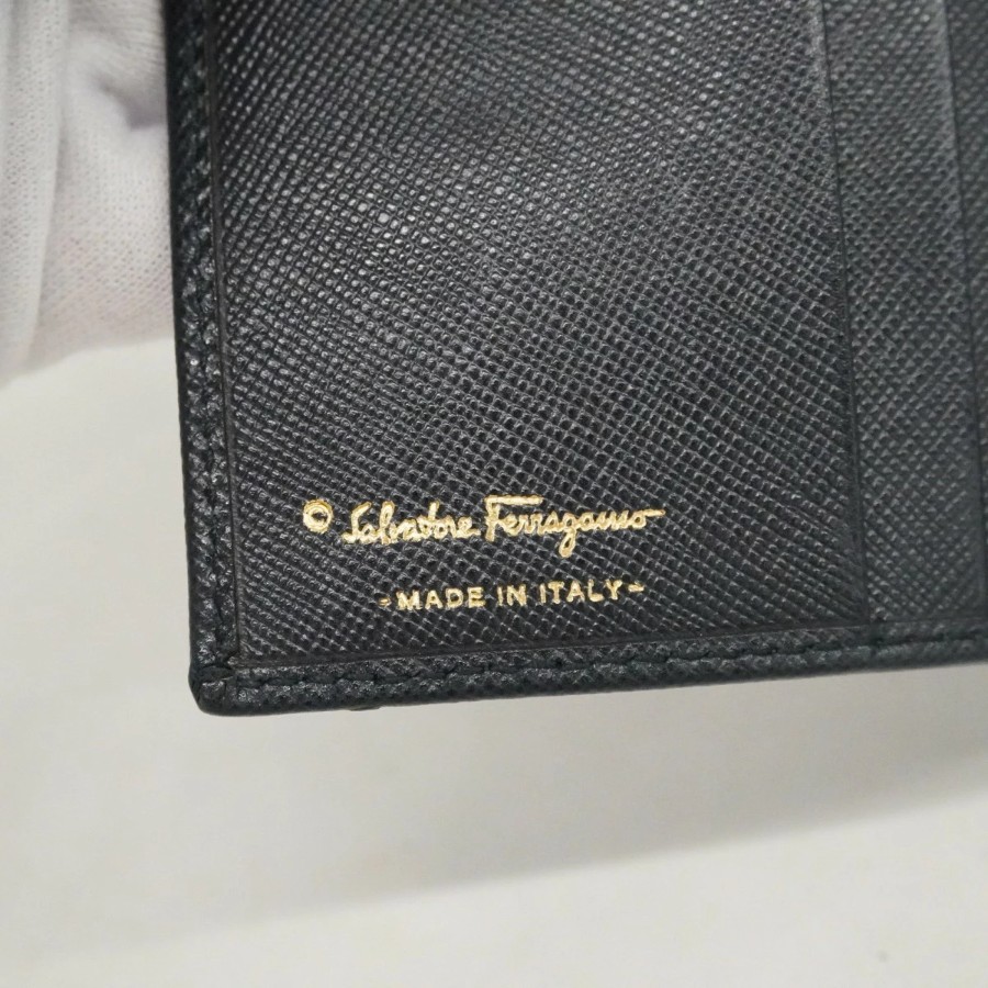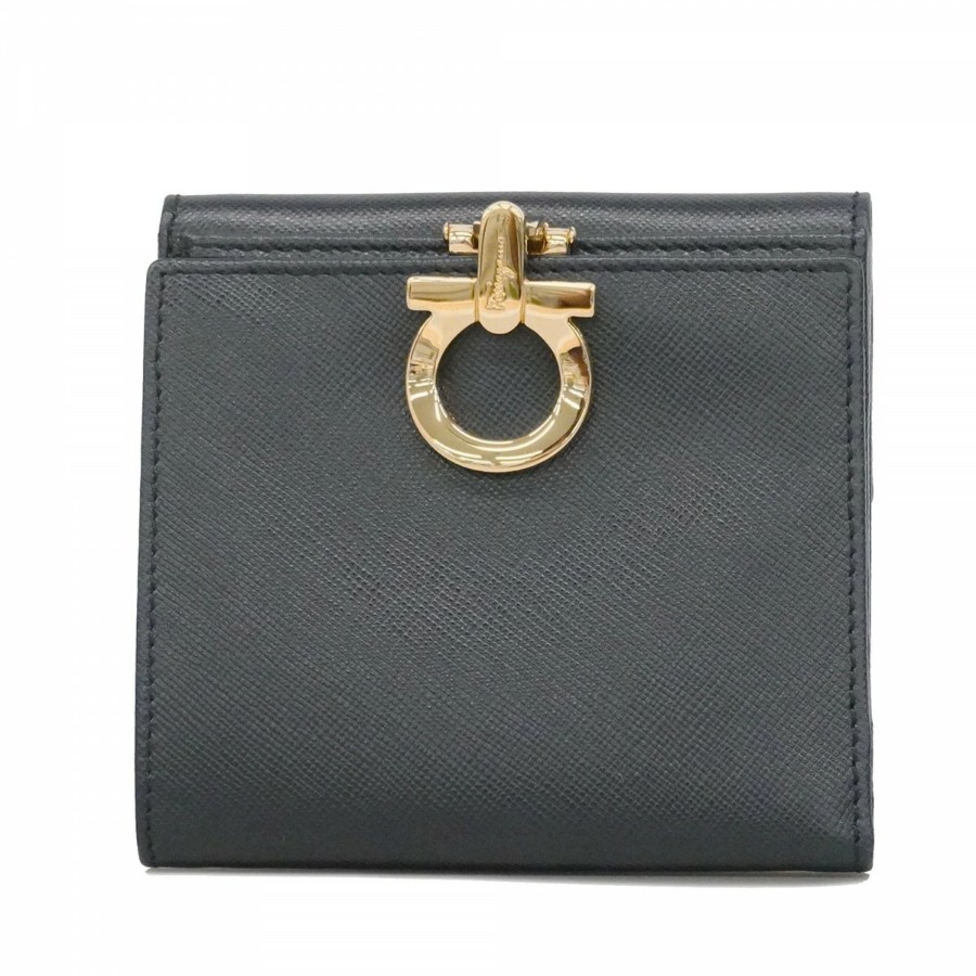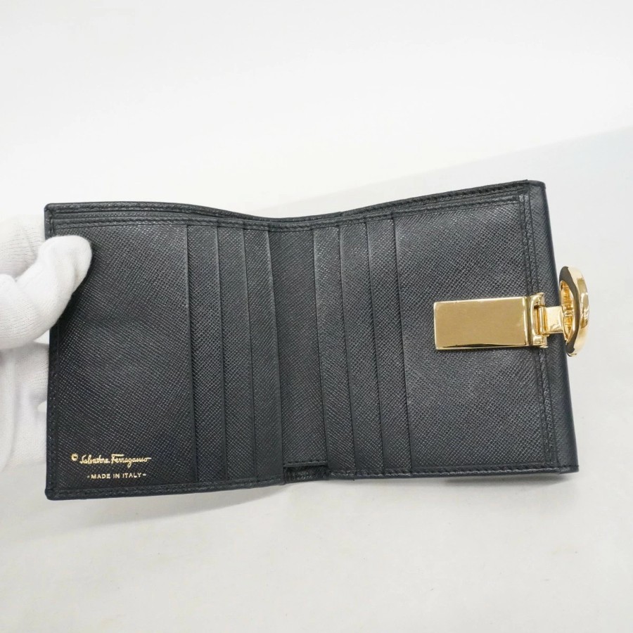 【6dd4304】サルヴァトーレフェラガモ 財布 ガンチーニ レザー ブラック ゴールド金具【中古】レディース