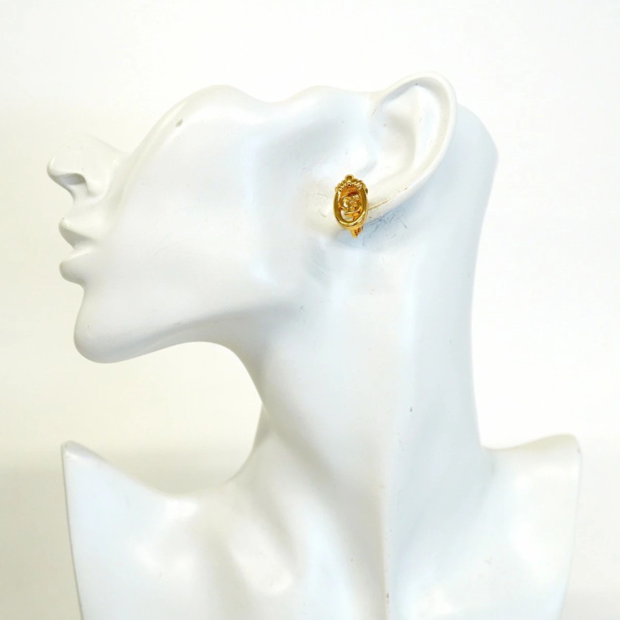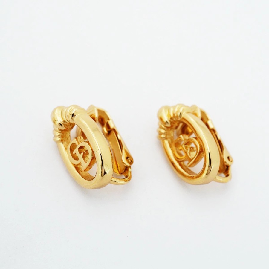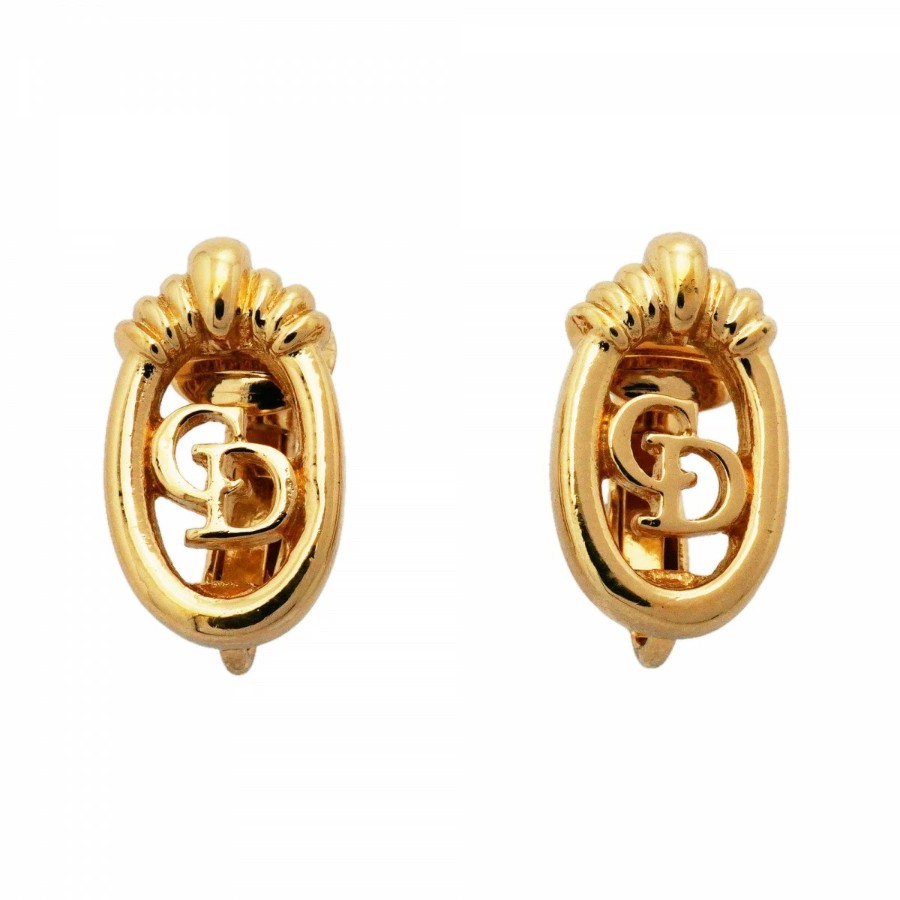 【6jdb0349-k】クリスチャンディオール イヤリング CDロゴ GPメッキ ゴールド【中古】レディース
