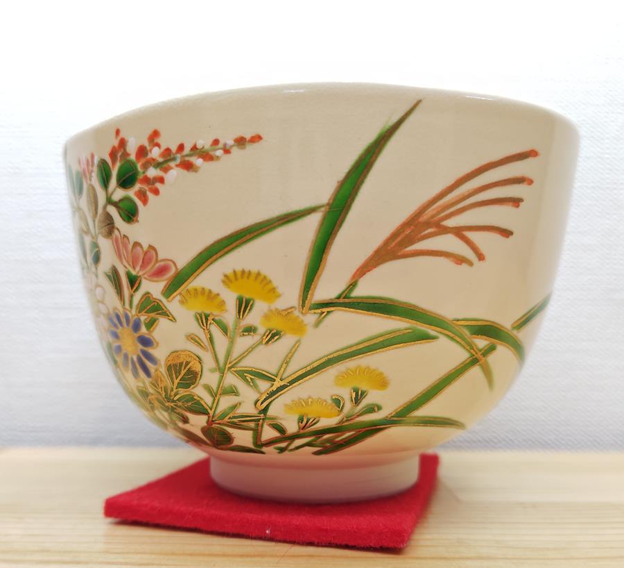 Manufacturing: Ikkyugama (Kyoto)Design: autumn flowersSize: 12cm/8cmAccessories: Wooden boxCondition: Unused