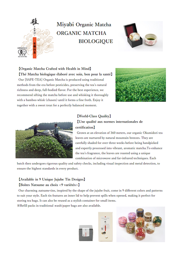 雅(みやび)は農薬を一切使用せずに栽培された有機茶葉で作られています。