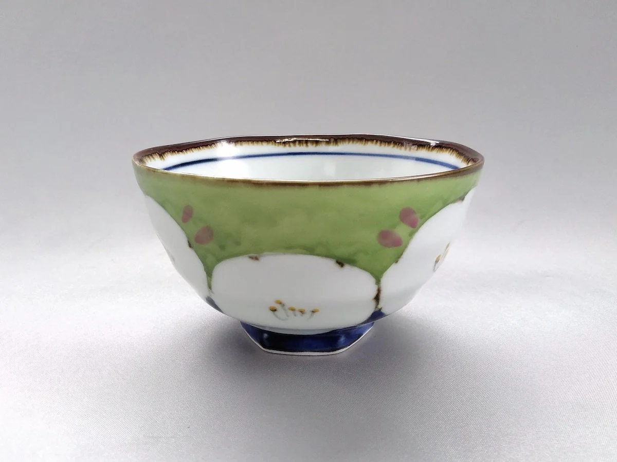 【One-of-a-kind Japanese Artisanal Handcrafted Piece】 Dark Flower Hexagonal hill Rice Bowl Green - Crafted By Fukuho Kiln