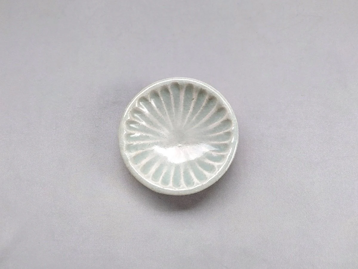 【One-of-a-kind Japanese Artisanal Handcrafted Piece】 Thick shaved Round Small Plate with Green penetration - Crafted By Hyozan Kiln