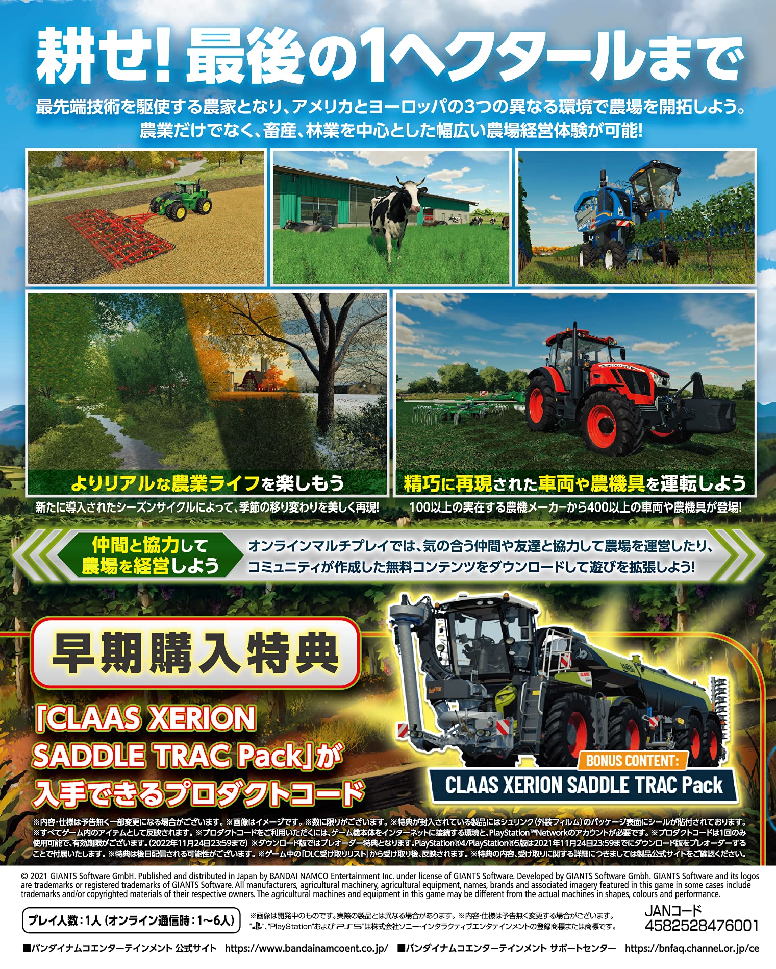 最先端技術を駆使する農家となり、アメリカとヨーロッパの3つの異なる環境で農場を開拓しよう。農業だけでなく、畜産、林業を中心とした幅広い農場経営体験が可能だ。新たに導入されたシーズンサイクルによって、季節の移り変わりが美しく再現され、よりリアルな農業ライフを楽しむことができる。