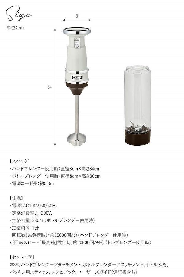 3営業日以内に発送≪新品未開封品≫:本体1つでハンドブレンダーとボトルブレンダーの2通りの使い方ができる「2in1」ブレンダー!料理の下ごしらえ、ポタージュ、離乳食から、ドリンクやスムージーまで簡単に調理できます。【ハンドブレンダー】 ・「つぶす」「混ぜる」が簡単に。 ・ダイヤルを回して回転スピードを無段階に調節できます。 ・誤作動を防止する「スライド&プッシュスイッチ」で安心。 ・軽量かつスリムで女性の手にも持ちやすい! ・お鍋やボウルに直接使えるので、洗い物も少なく後片付けもラクラク!【ボトルブレンダ―】 ・ボトルに材料を入れて、上からプッシュするだけのカンタン操作! ・ボトルふた付きで、そのまま持ち歩きも保存も可能。■■Toffy_Classicシリーズ■■ ちょっぴりレトロで親しみのあるデザインが魅力。 シンプルで扱いやすいスペックと、ダスティカラーが人気のクラシックラインです。