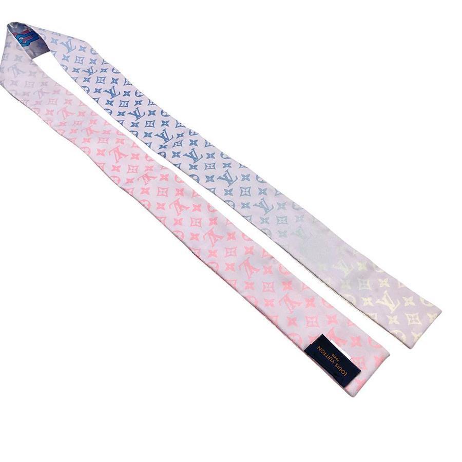 LOUIS VUITTONのストーン付きバンドーです。あまり見ないタイプですので他の人と差が出る逸品!箱付きで保存も安心です。【サイズ】横 5cm x 縦117cm【付属品】箱 / リボン【素材】シルク100%【状態】とても綺麗で長くご愛用頂けるお品です。【USED品について】写真を拡大するなどしてしっかりご覧になったうえでご検討下さい。 / 中古品ですので小傷等お気になされる神経質な方はご遠慮ください。 / 新品、展示品レベルのきれいな状態のお品物でも一旦はどなたかの手に渡ったものであることをご理解の程お願いいたします。 / 前所有者のメンテナンス状況、保管状況はわかりかねます点ご了承下さい。