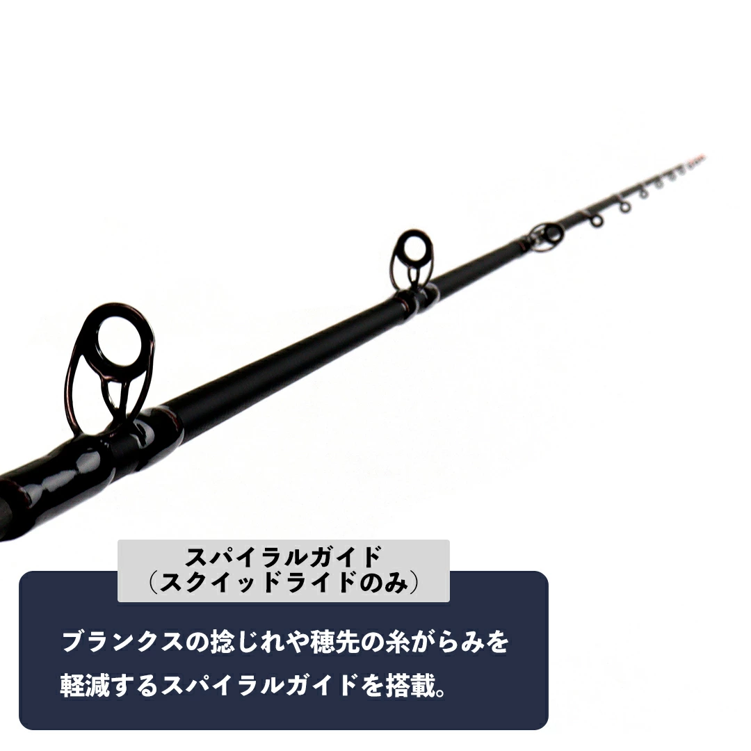 ガイドは穂先の糸がらみを軽減するスパイラルガイドを採用。トップガイドには国産FUJI製のSICガイドを採用しています。