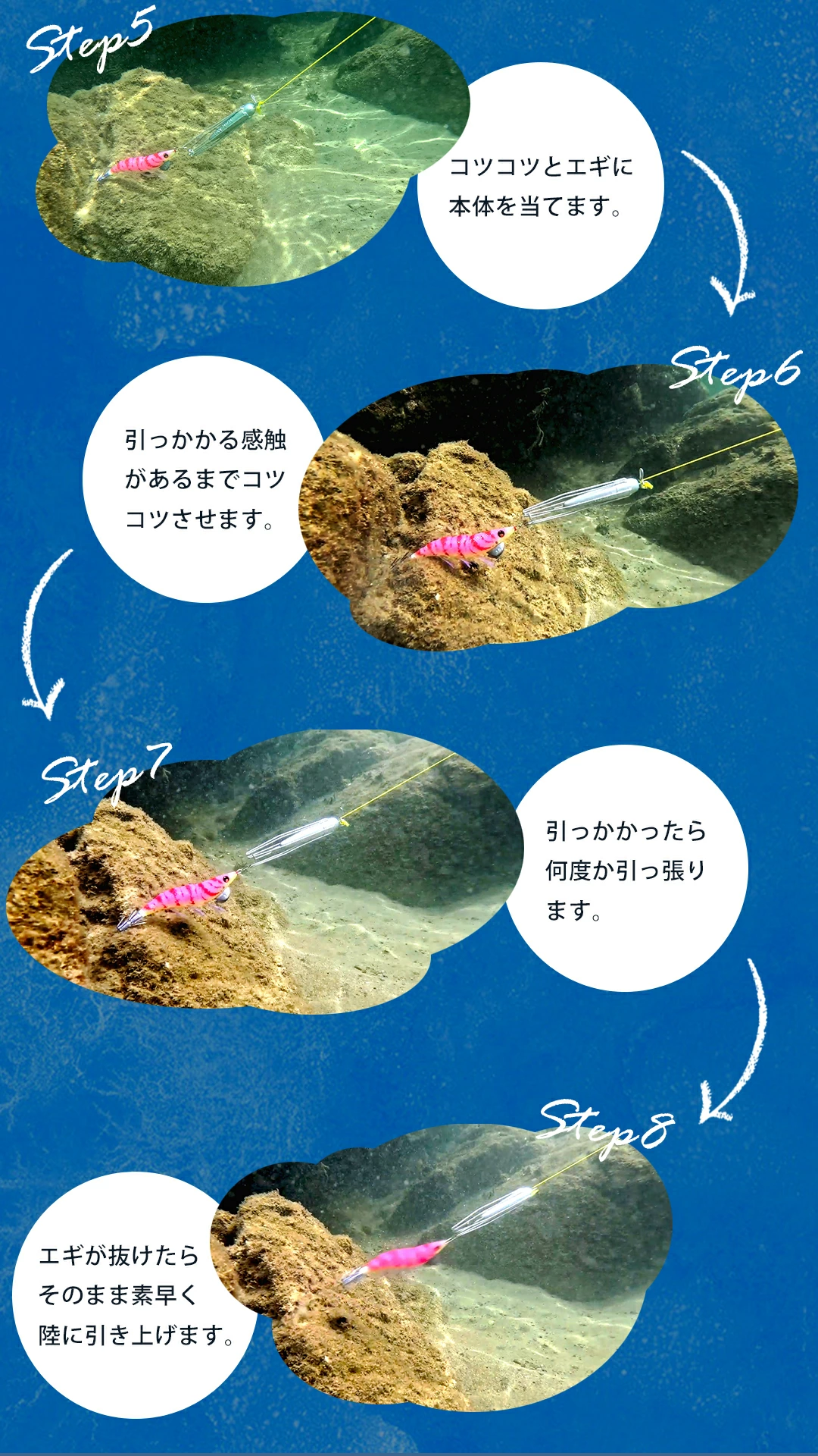 根掛かりしたエギ・ルアー・スプーン 回収No.1!これでお気に入りのエギを無くさなくて済みますよ。海のゴミを作らない地球環境にも良い逸品。