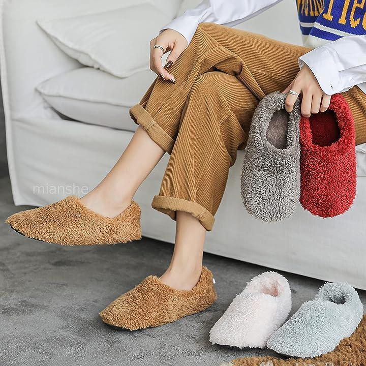 柔らかく手触りの良い舒綿ビロード製のパイル生地をバブーシュ風のルームシューズに仕立てました。