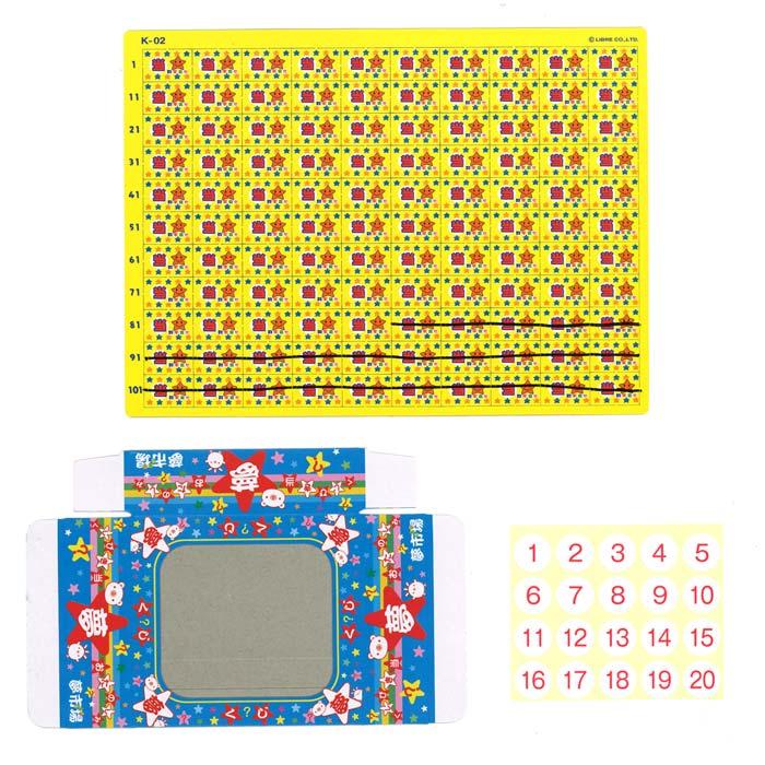 景品に貼れる番号シール(1〜20)が付いているので、目玉の景品に付けてご使用ください。