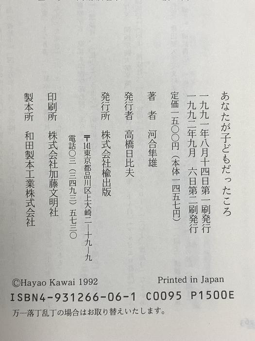 When you were a child: A collection of conversations between Hayao Kawai and Nire Publishing Hayao Kawai