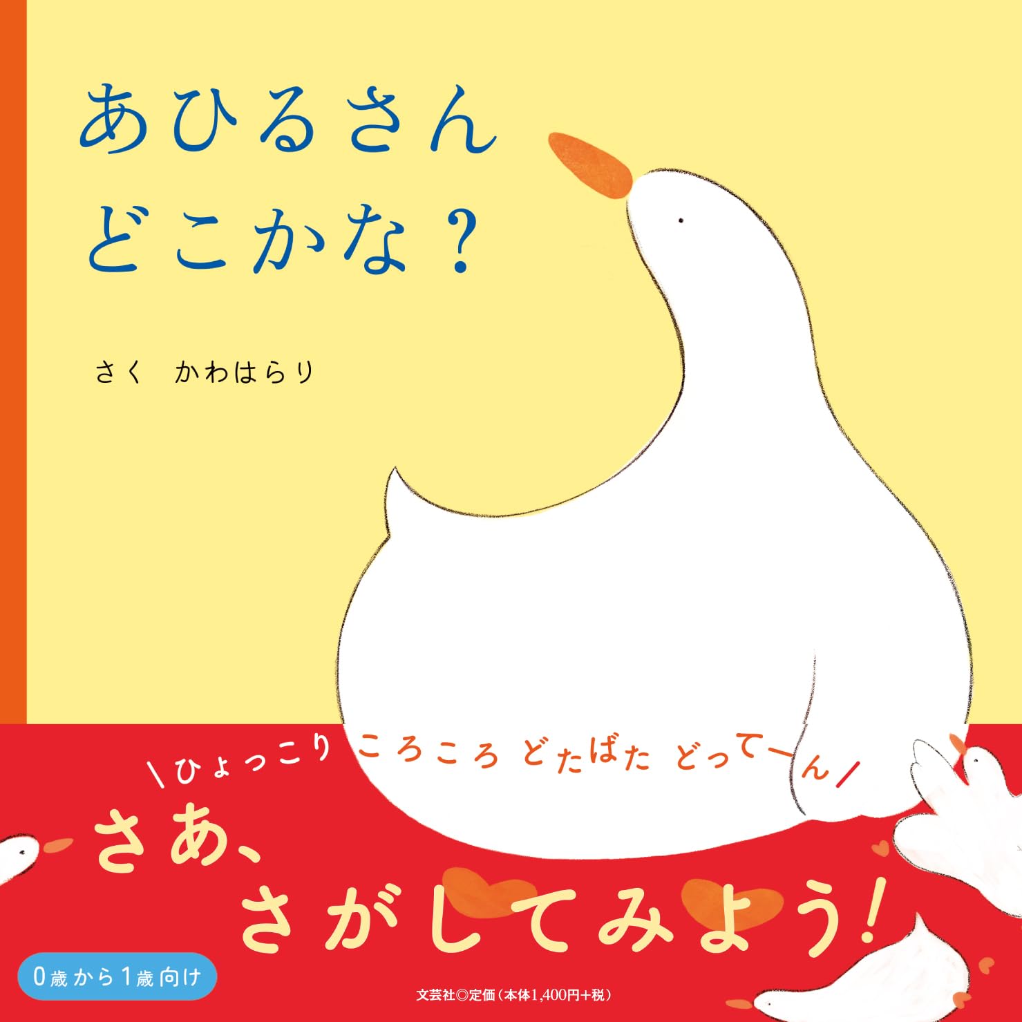 ゆる~い顔をしたあひるさんが、ふくろの中、せんたくものの中、木の上、カバさんのうしろなど、さまざまな場所にかくれています。さて、どこにいるかな? 擬音語もふんだんに使っているので、赤ちゃんと一緒のときは読み手も読み方を工夫しながら読むことができます。人気イラストレーターかわはらりの、みんなでリラックスしたいときにおすすめの絵本。おやすみ前にも。