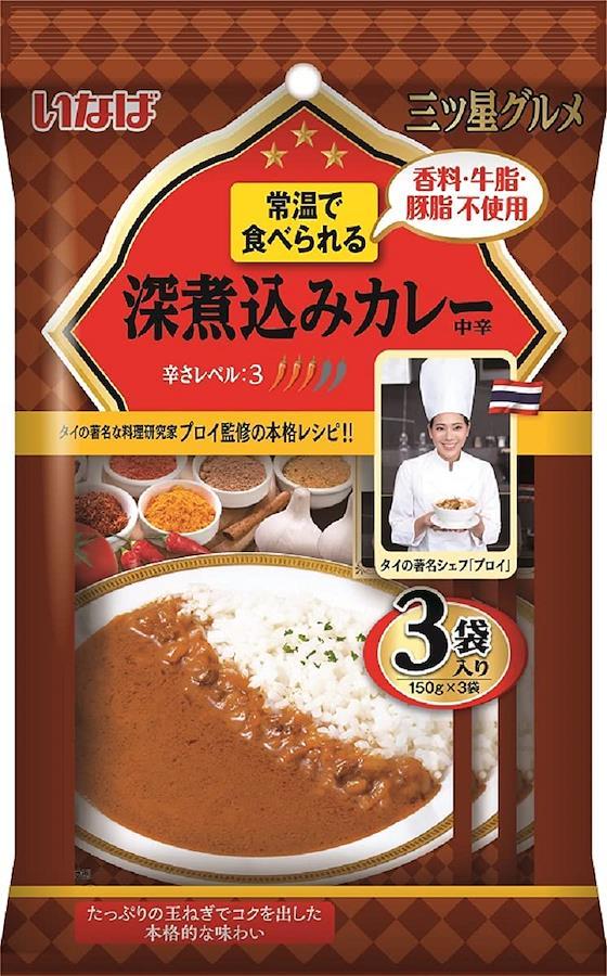 原材料:ココナッツミルク、玉ねぎ、カレーペースト、砂糖、トマトペースト、大豆油、鶏肉、カレー粉、みそ、醤油、唐辛子、酵母エキス、食塩、野菜エキス/増粘剤(加工デンプン)、調味料(アミノ酸等)、(一部に小麦・大豆・鶏肉を含む)