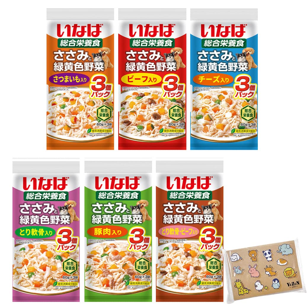 ささみと緑黄色野菜 6種類アソート 60g×3個パックYuZuNオリジナルポケットティッシュ付き