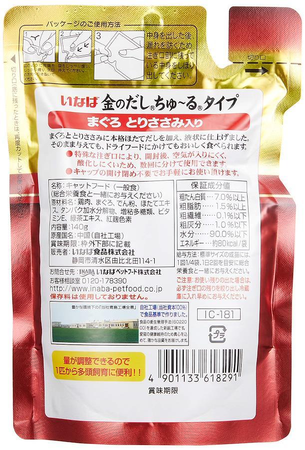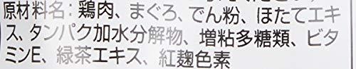 鶏肉、まぐろ、でん粉、ほたてエキス、タンパク加水分解物、増粘多糖類、ビタミンE、緑茶エキス、紅麹色素