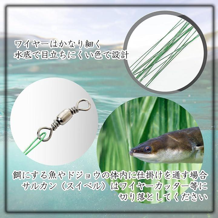 ・餌にする魚やドジョウの体内に仕掛けを通す場合、サルカン(スイペル)はワイヤーカッター等に切り落としてください。