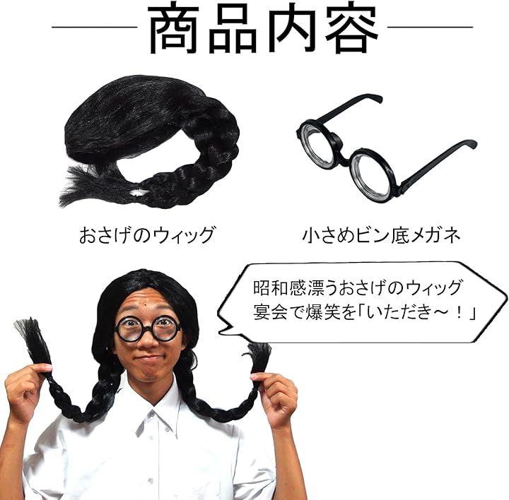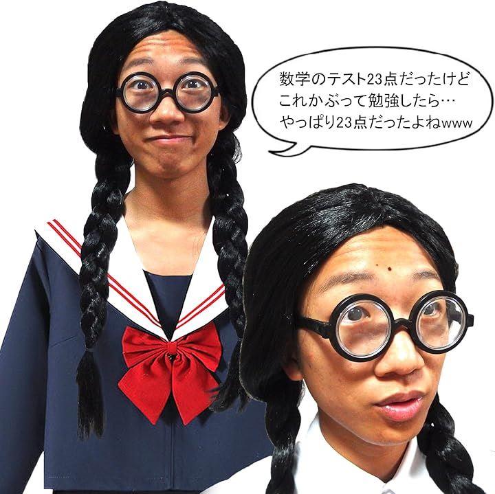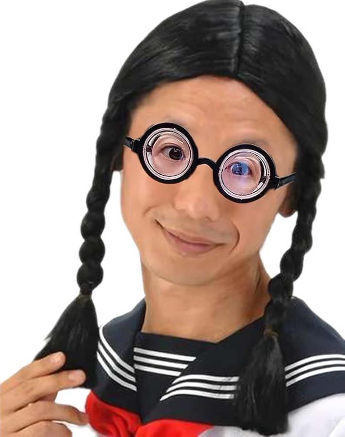 学園祭や文化祭、ハロウィン、忘年会、新年会の鉄板ネタに。 おさげ髪と分厚いレンズの眼鏡で、笑いと注目を独り占めして、イベントや配信の一発芸に。