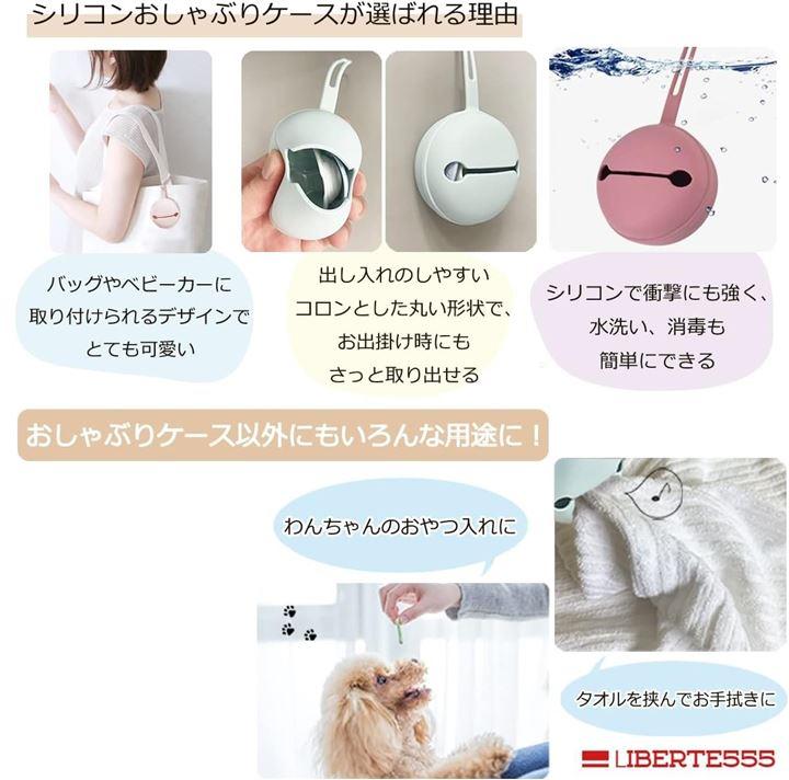 バックやベビーカーに取り付けられるデザインでとても可愛く、出し入れのしやすいコロンとした丸い形状で、お出かけ時にもさっと取り出せます。