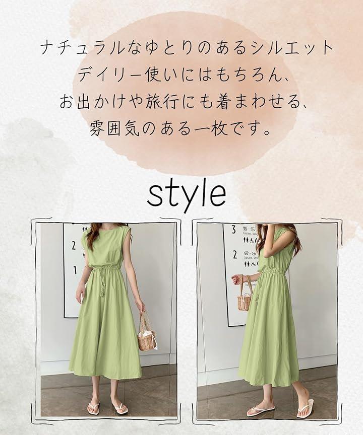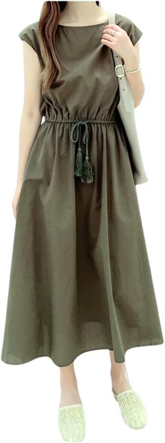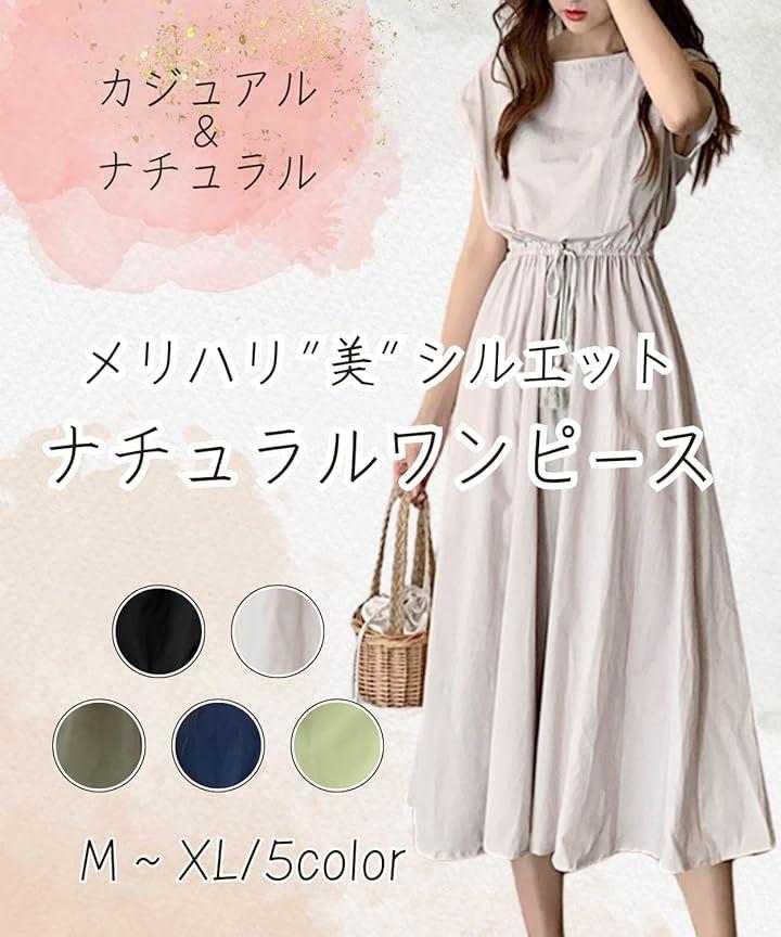 肌触りが良く、優れた通気性と柔らかさも兼ねる綿混素材で仕上げた爽やかな着心地の綿麻風ワンピース ウェストはゴム仕様でロープリボンがアクセントになっています ウェストがキュッと絞られたデザインで美しいシルエットを作り出します。