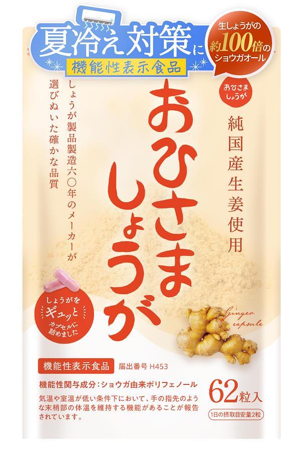 ■サイズ:??16x10.8x1.2cm;20g 【生しょうがの100倍】豊富な成分量でしょうがパワーを実感ください。ショウガオールは別名「芯からポカポカ成分」。中から直接働きかけ、新からポカポカ指せる効果があります。おひさましょうがではなんと生しょうが100倍のショウガオールを誇ります。 【機能性表示食品です】気温や室温が低い条件下において、手の指先のような抹消部の体温を維持する機能があることが報告されています。(機能性関与成分:ショウガ由来ポリ位フェノール 届出番号H453) 【カプセルタイプなので接種しやすい】サプリメントのように持ち歩き、気軽に接種できます。 【しょうがの辛味や刺激が苦手な方に】カプセルタイプなので接種しいやすい商品です。 【お召し上がり方】1日2粒 保存性も抜群なカプセルタイプです。 【高知県産「土佐一しょうが」を使用】高品質を、限り無くシンプルに。おひさましょうがのしょうがは、「日本三代清流」としても名高い四万十川流域で育てられています。 【宮崎医師のお墨付き】総合内科専門医 食生活アドバイザーの宮崎医師もご使用いただいいています。冷え性対策は重要で、血行不良や健康問題を引き起こす可能性があります。ショウガオール・ジンゲロールはショウガ由来ポリフェノールで、体内の血行を促進し、芯から温める効果があります。これら成分を含む製品は冷え性対策に役立ちます。