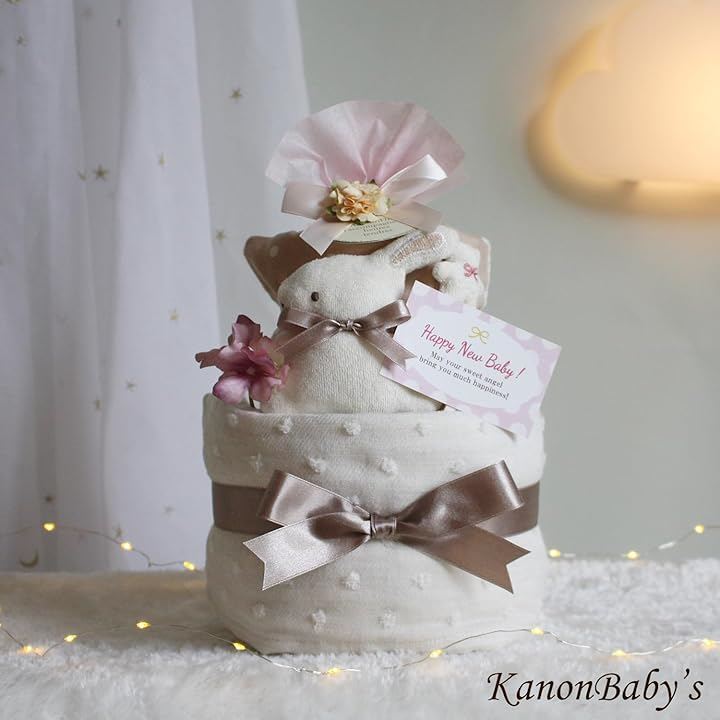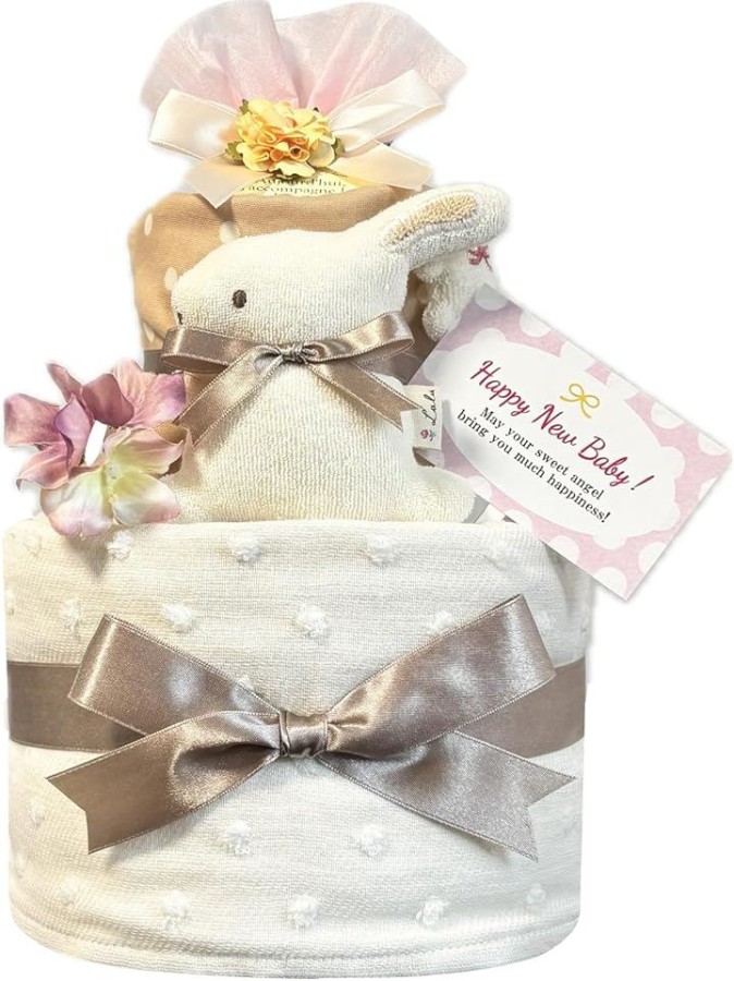 出産祝いに最適なオーガニックタオルのおむつケーキ: 世界的に評価されている愛媛県今治市で生まれたジャパンクオリティのタオルを使ったおむつケーキは、赤ちゃんへの特別な出産祝いとして人気があります。