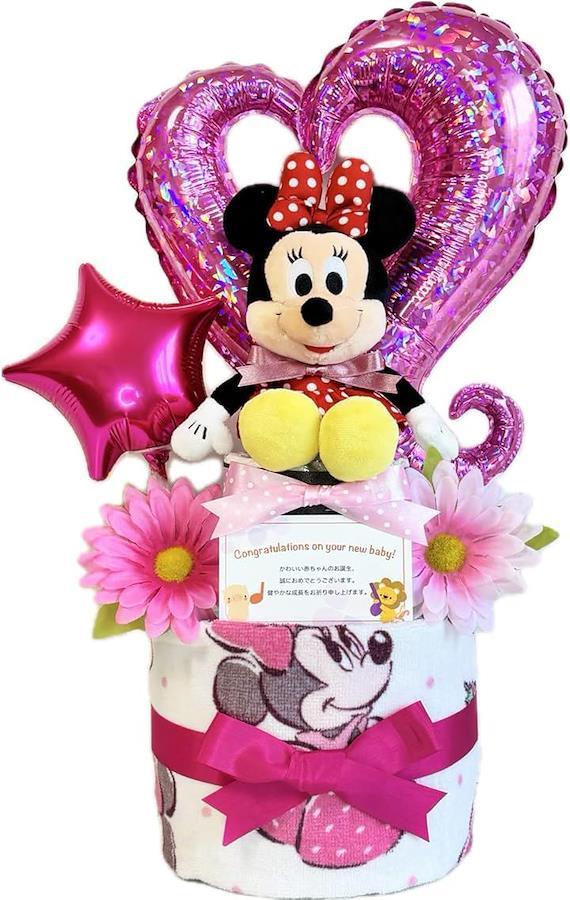 「華やかさと愛らしさを兼ね備えたデザイン」 人気キャラクターのデザインが施されたおむつケーキは、華やかで愛らしい特別な贈り物です。