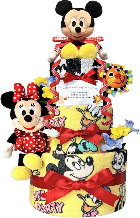 「華やかさと愛らしさを兼ね備えたデザイン」 人気キャラクターのデザインが施されたおむつケーキは、華やかで愛らしい特別な贈り物です。